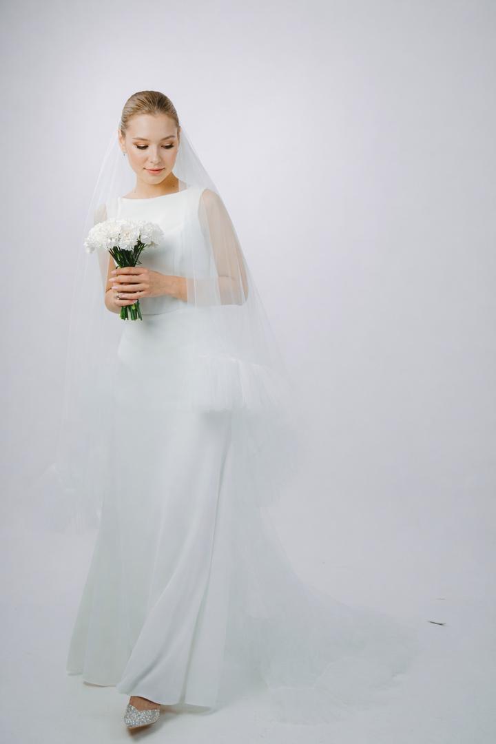 Свадебное платье индивидуального пошива: минималистичное в комплекте объёмная, эффектная фата р 42–44, на рост 170 в идеальном состоянии Артикул: 537242