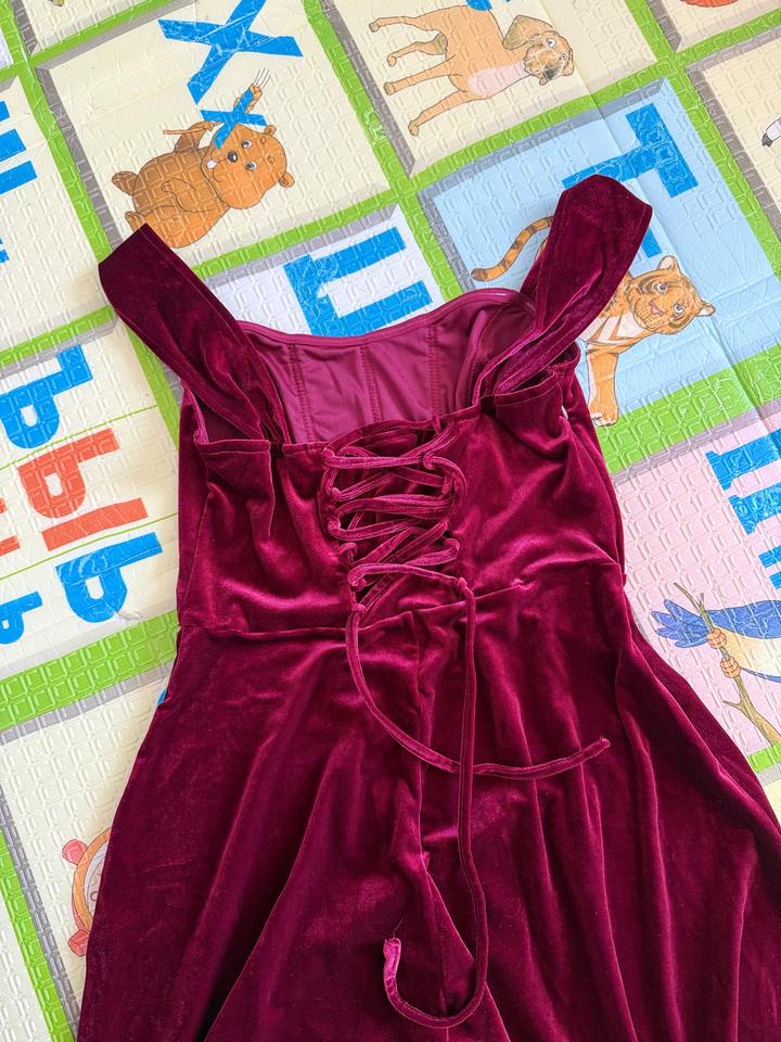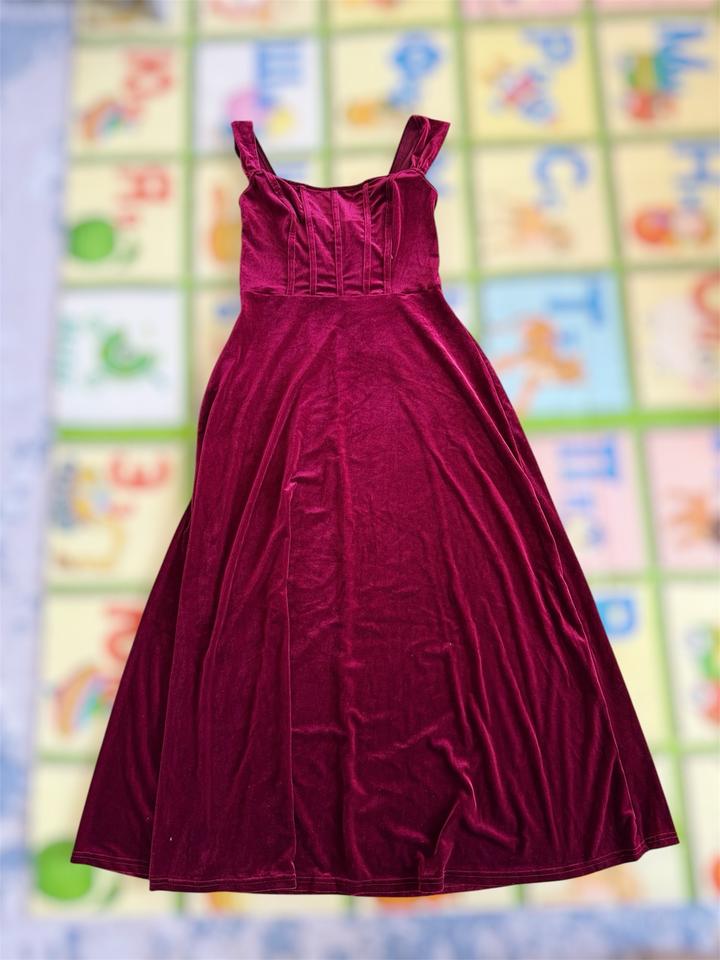 Женское платье.Это платье выглядит очень нежно и благородно Глубокий винный оттенок придаёт ему выразительность и лёгкую загадочность, а мягкая бархатистая ткань красиво переливается на свету, создавая эффект роскоши. Лиф аккуратно оформлен вертикальными линиями, которые подчёркивают силуэт и добавляют изящества. Широкие бретели. Юбка свободно струится книзу, спина на завязках Артикул: 537283