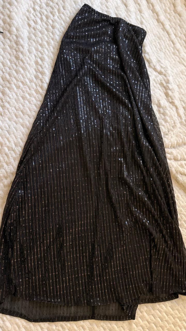 Блестящая юбка на подкладе, на резинке Думаю 44-48 будет нормально Пару раз одевала Артикул: 537292