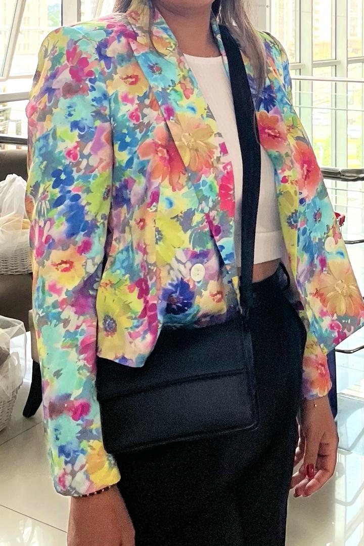 Укороченный блейзер (пиджак) с цветочным принтом, в отличном состоянии, без дефектов Артикул: 537331