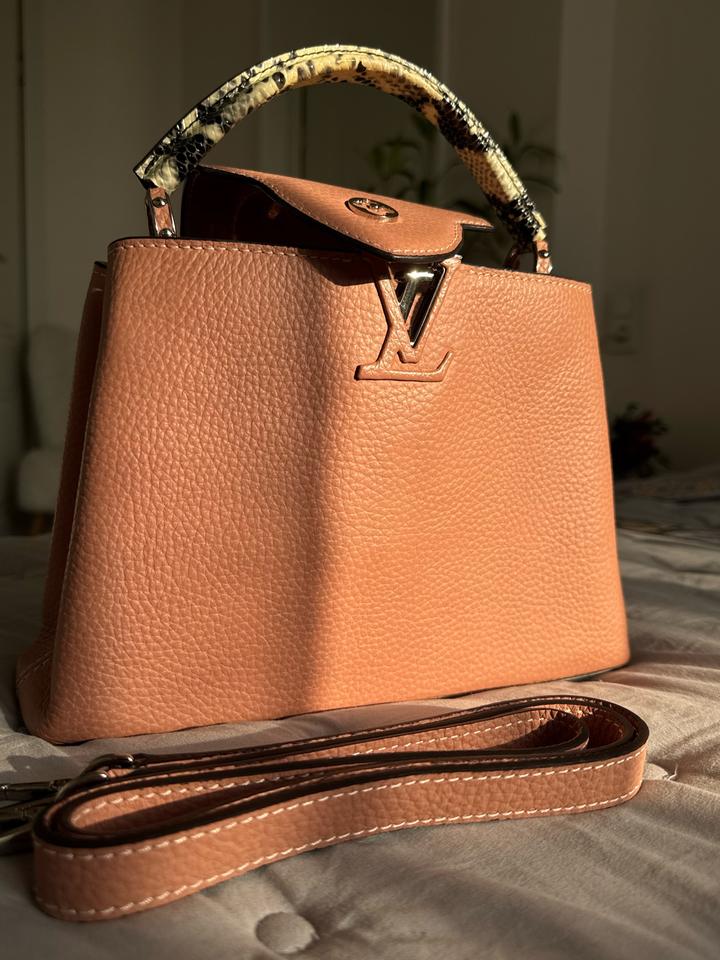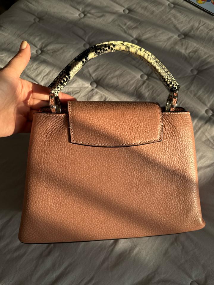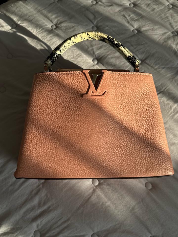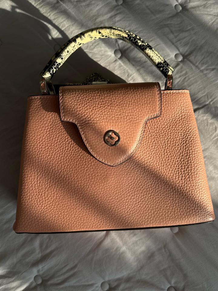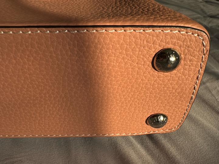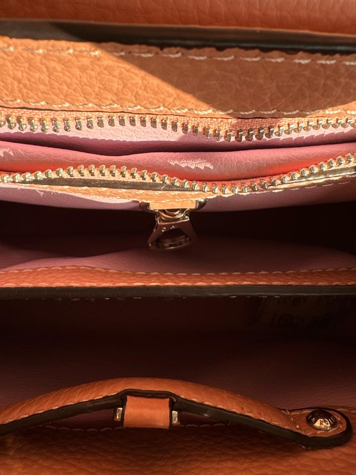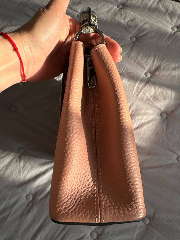 Благородный нюдово-пудровый оттенок — базовый, дорогой, легко сочетается с любыми образами. Натуральная кожа внутри и снаружи, форма держится идеально. В комплекте плечевой ремень. Состояние отличное, есть небольшой нюанс на ручке — легко обыгрывается платком/твилли. Выглядит очень достойно и «дорого» в жизни. Артикул: 537473