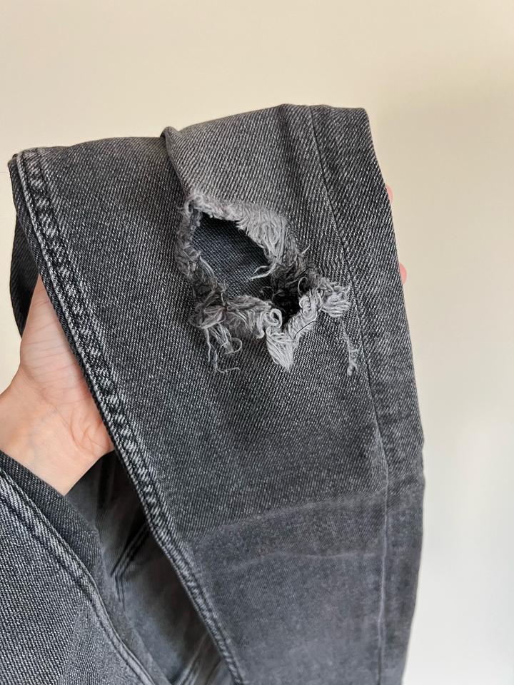 Покупала в китайской заре. Подойдет на вес 45 кг. На самих джинсах нет пятен, только ободранные, но так задумано. Артикул: 537500
