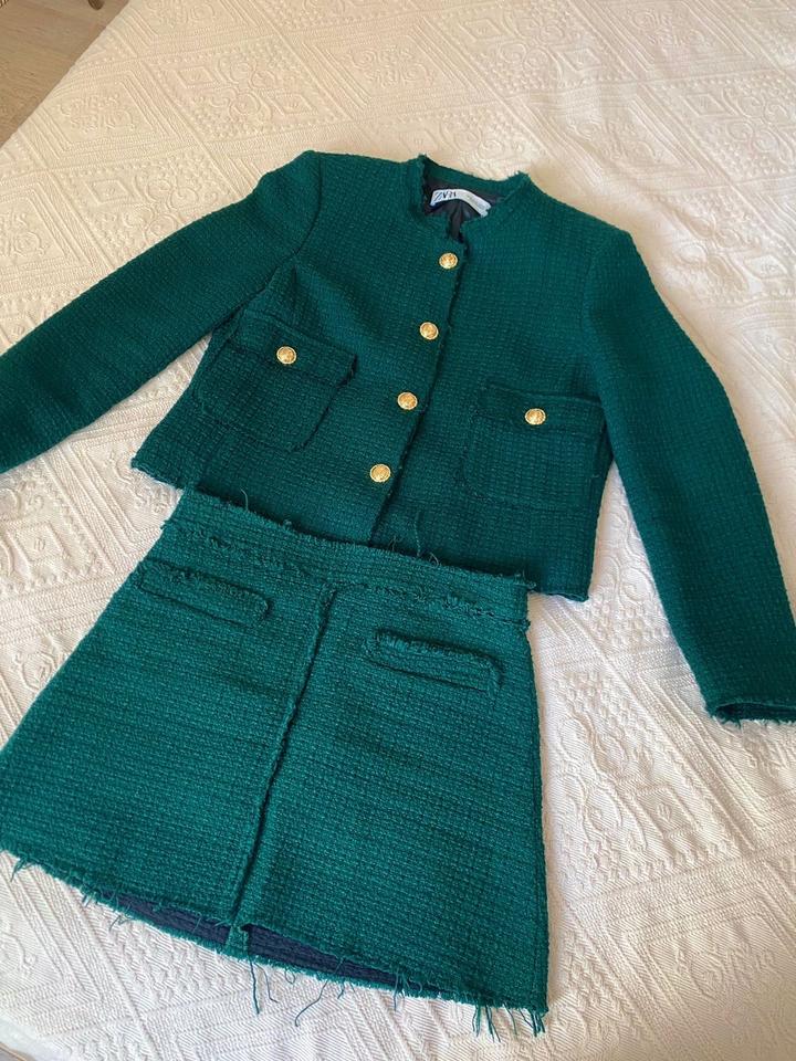 Костюм твидовый в темно зеленом цвете от ZaraS/M