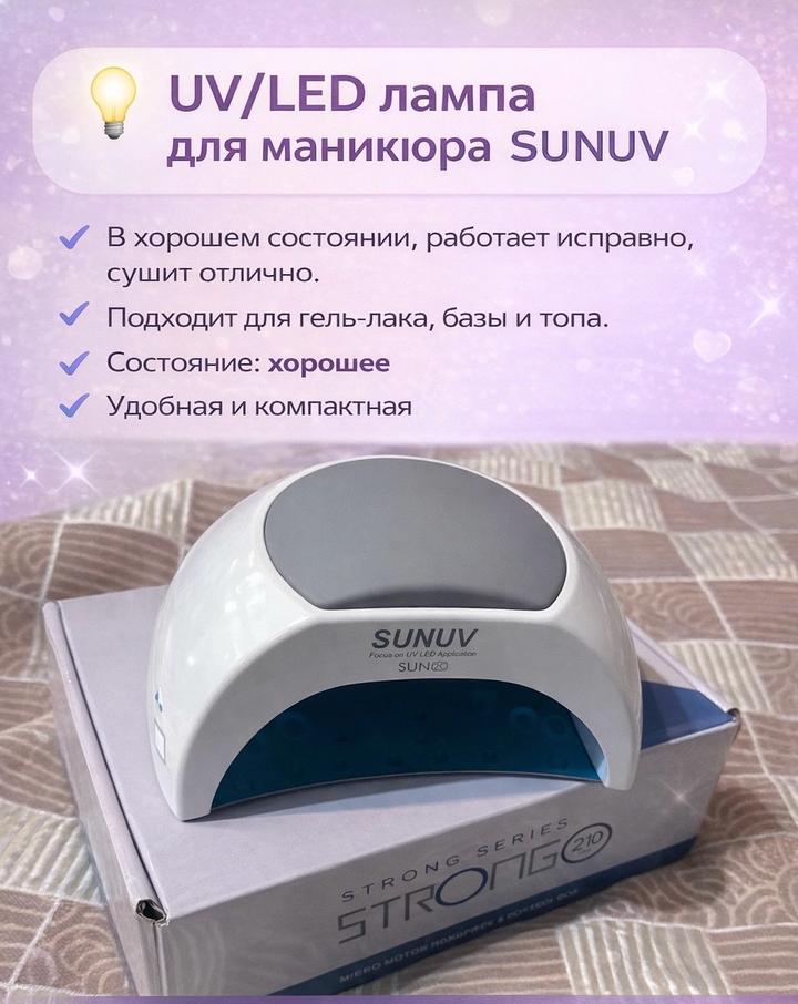 Оригинальный аппарат Strong B210 / H350 • Производство: Южная Корея 65 Вт | до 40 000 об/мин У Без вибрации, защита от перегрузки Пользовалась 2 месяца, состояние отличное, работает идеально. UV/LED лампа для маникіора SUNUV • В хорошем состоянии, работает исправно, сушит отлично. Подходит для гель-лака, базы и топа. • Состояние: хорошее Удобная и компактная SUNUV Артикул: 537547