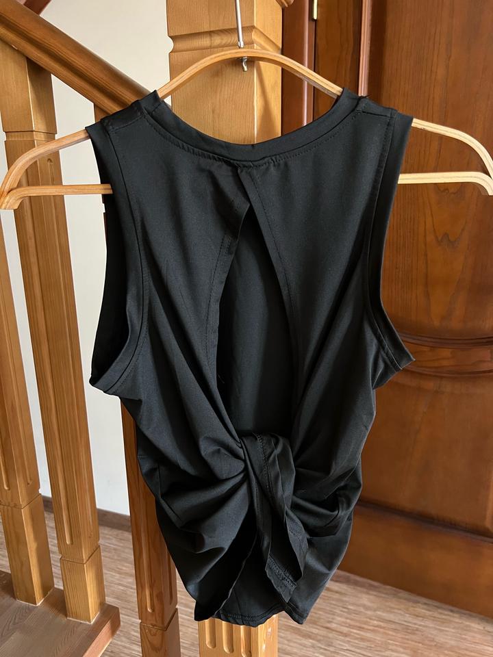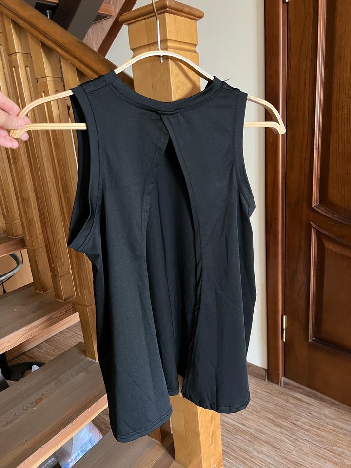 Полиэстер, не подошел размер, новая, без пятен и тд. Удобно носить со спортивным бра, вместо футболки. Комфортно при занятия спортом. Размер М Артикул: 537564