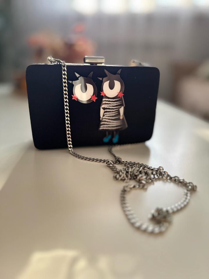 Новый, стильный и забавный аксессуар. Чёрный с крупными «глазами» и милой девочкой — добавит изюминку любому образу. Компактный, но эффектный — легко носить с собой и выделяться. Идеально для повседневного или вечернего выхода. Артикул: 537592