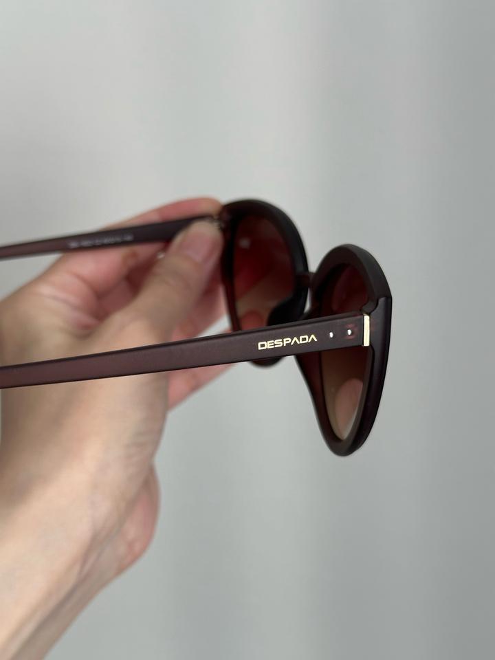 Солнцезащитные очки Despada, коричневый цвет. Очень легкие, не давят на переносицу. Идеальное состояние, покупала в Actual Optic. Носила пару раз, дефектов нет. Твердый чехол не сохранила, в комплекте мягкий чехол. Артикул: 537602