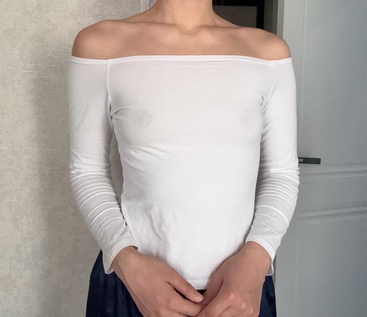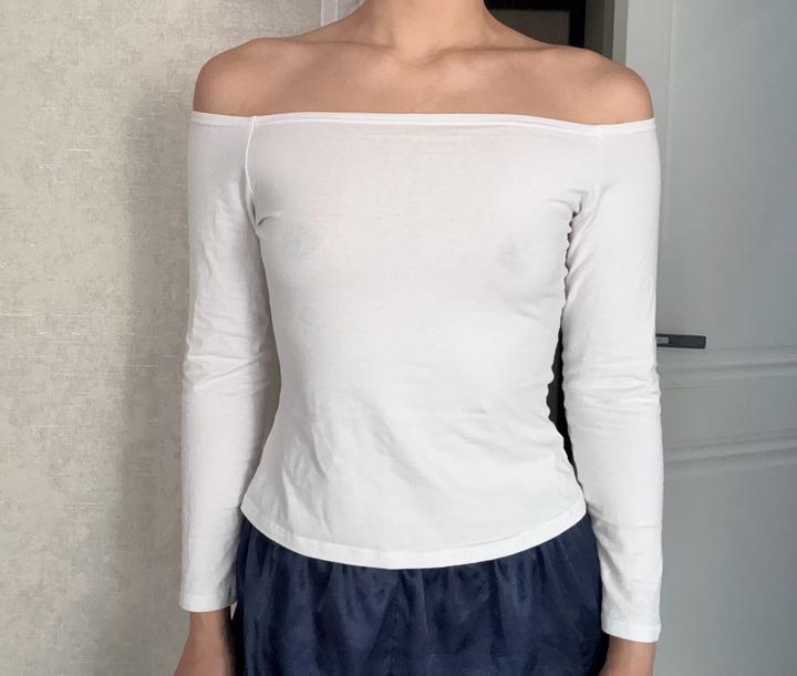 Лонгслив белый со спущенными плечамиS/M
