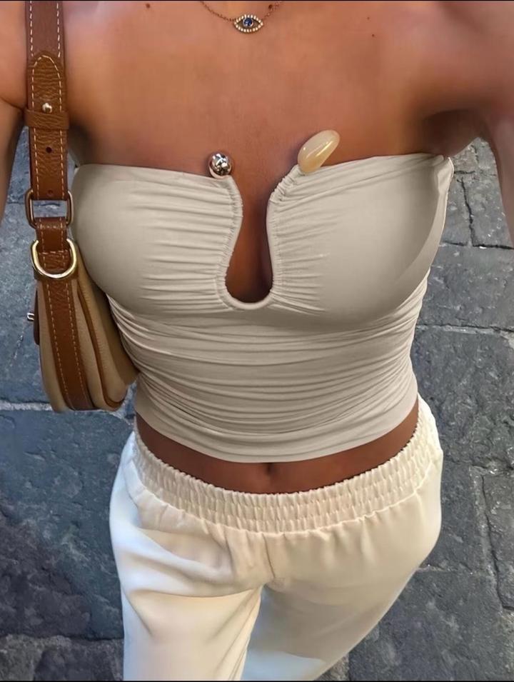 Трендовый топ-бандо с акцентной фурнитурой. Размер: S и очень эффектный топS