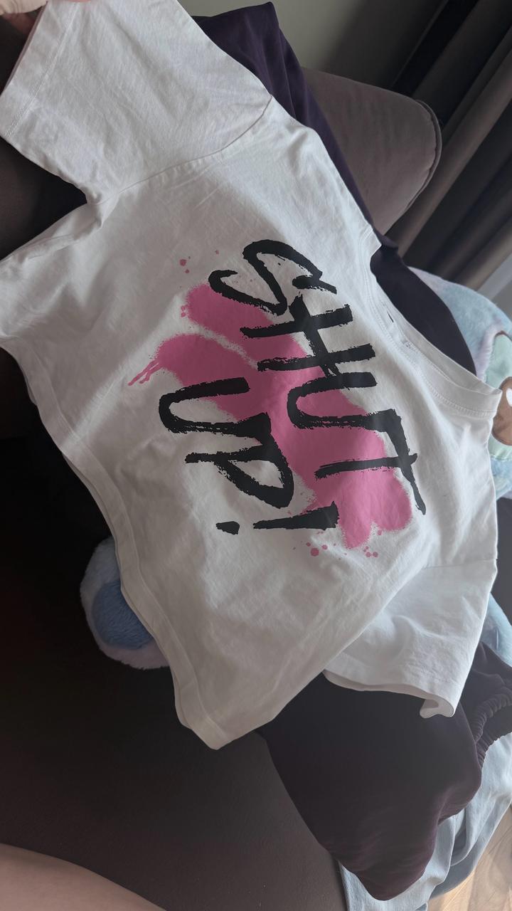 белая кроп-футболка с надписью shut up! 🤌🏼 не ношу, много вещей в гардеробе) Артикул: 537740
