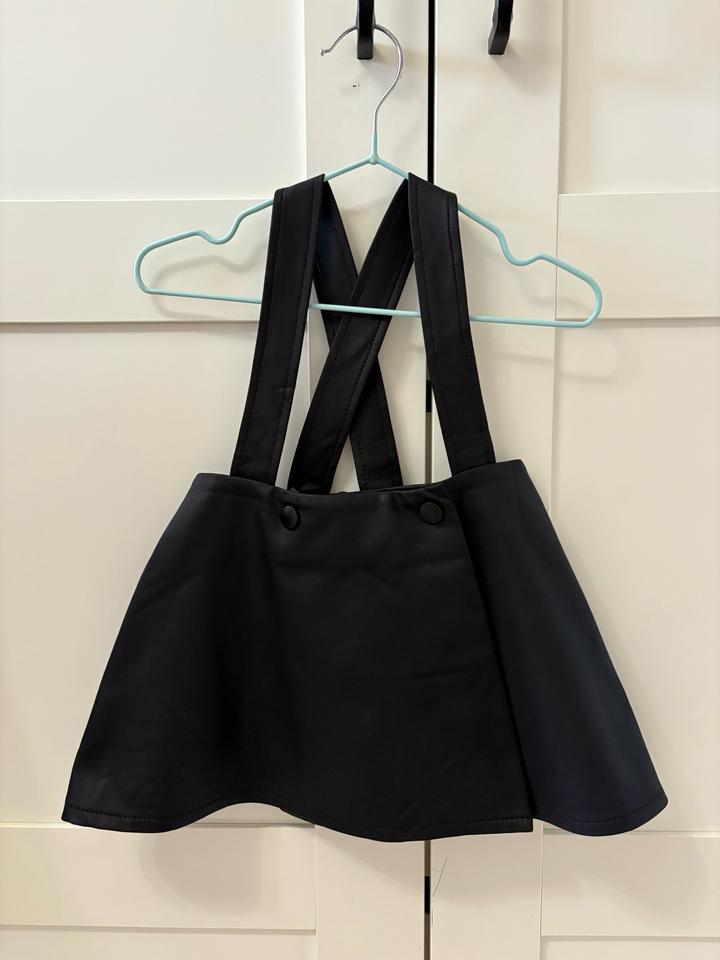 Юбка из кожзама с лямками. Застегивается на две клепки. Одели один раз на фотосессию. Размер 92-98. Два года это максимум. Артикул: 537743