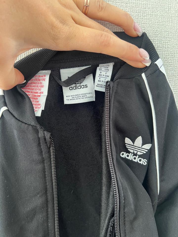 Adidas Adicolor SST Размер: 9–12 месяцевСостояние: отличное / как новое Классическая олимпийка Adidas с фирменными тремя полосками и логотипом Trefoil.Подойдёт и мальчику, и девочке. Артикул: 537779