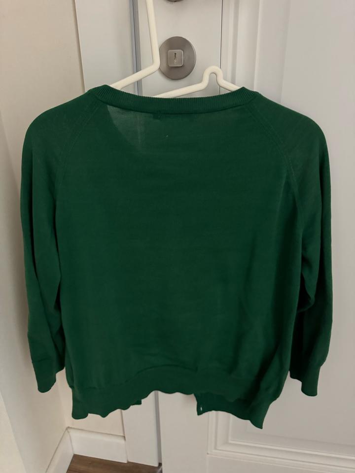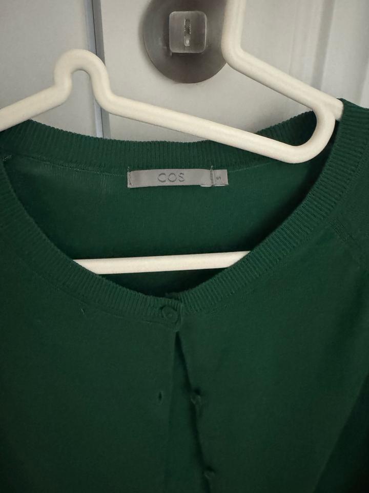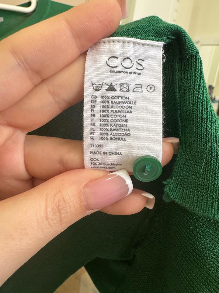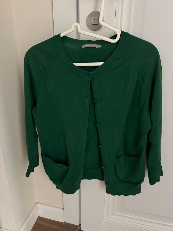 Зеленый кардиган Cos немного укороченный, размер S ,хлопковый тонкий. Пару лет назад из Италии привозила. Состояние хорошее у кардигана. Артикул: 537782