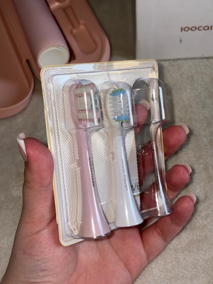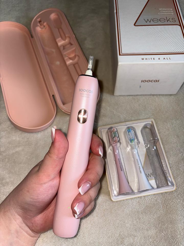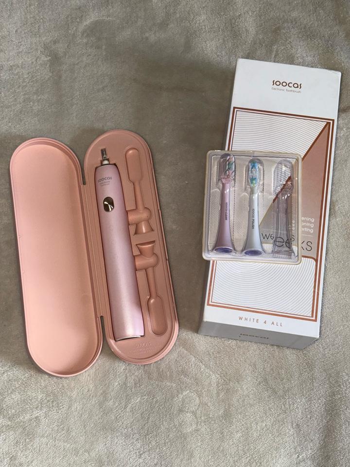 Soocas x3u Использовала одну насадку мягкую. Остальные две неиспользованные, polish и clean насадки Есть 4 режима чистки. Заряд хватает на очень долго. Чехол коробка документы Артикул: 537783