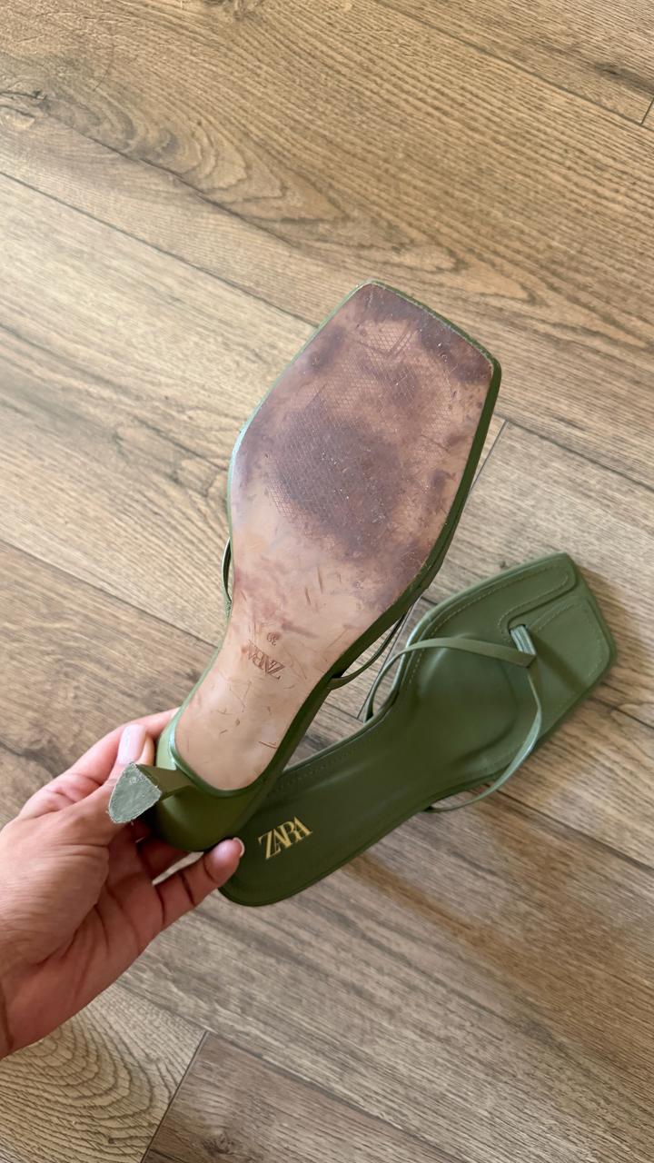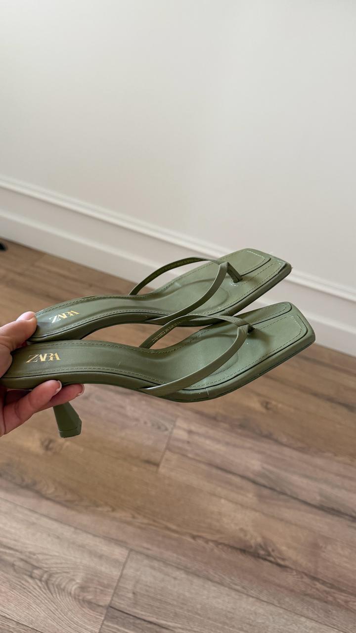 Шикарные кожаны босоножки, zara, в трендовом оливковом цвете, одевала один раз на мероприятие. Они смотрятся очень очень стильно. Покупала очень дорого Артикул: 537798