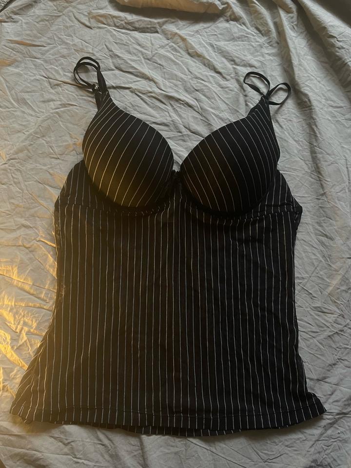 полупрозрачный сеточный топик в полоску; с твердыми чашками лямки регулируются открытая спина Артикул: 537887
