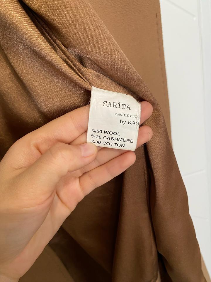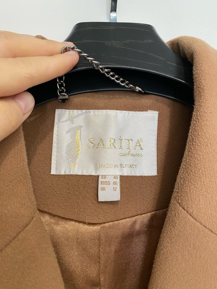 Теплое турецкое пальто из шерсти и кашемира фирмы Sarita. Одевала два сезона. Подойдет на 42-44-46 размер. В подарок положу щетку-расческу для выглаживания ворсинок(так как ткань из шерсти, ворсинки скатываются, их необходимо время от времени расчесывать) Размеры в сантиметрах на фото. Мой рост 162. Требует химчистки(есть пару пятен) Артикул: 537948