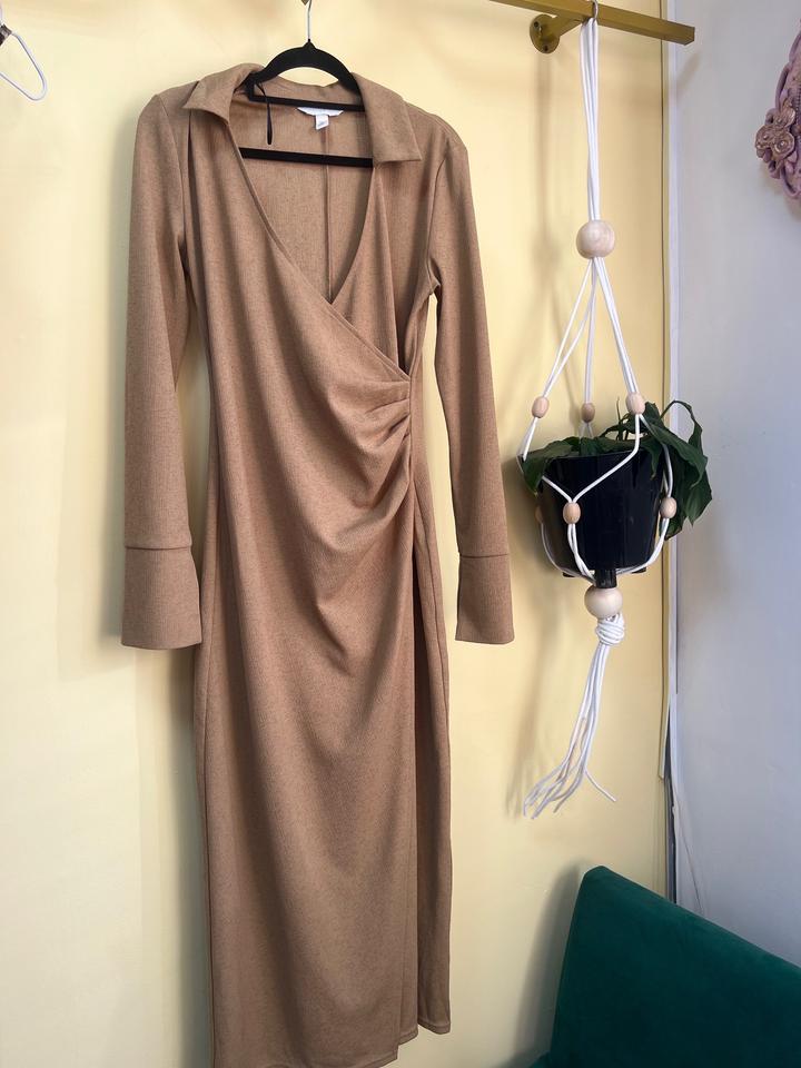 Длинное бежевое платье H&MS