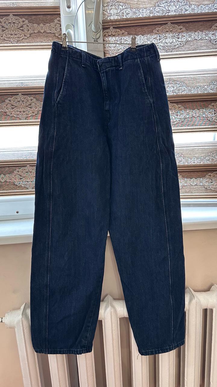 Темные джинсовые брюки Зара. Качество отличное, сидит идеально, похудела немного и мне стало большеват 😊. Удлиняет ноги за счет силуэта, больше похож на брюки трубку но немного шире в конце Артикул: 537978