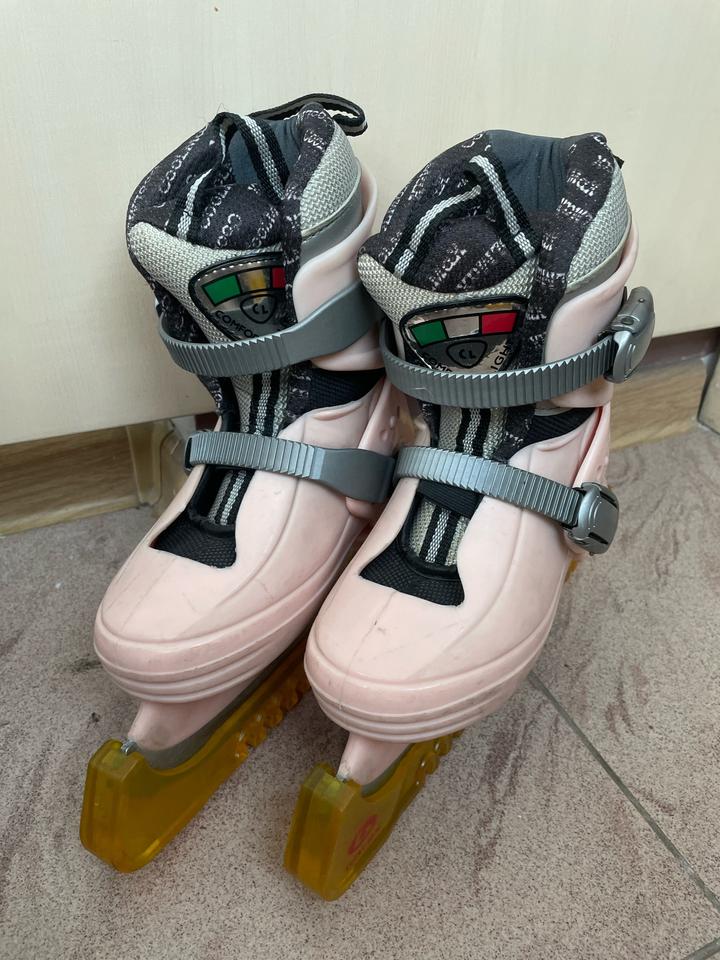Коньки деткие, удобно брать с собой на массовые катания. Хватит надолго, размер регулируется с 26 по 31. Продаю с чехлами в подарок. Производство Италия Артикул: 538042