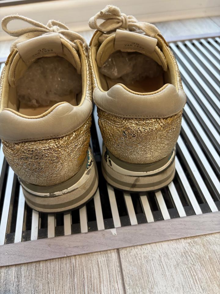 Небольшой торг уместен Натуральная кожа снаружи и внутри Очень удобные, мягкие, легкие Стильные золотые, на платформе Состояние хорошее, есть следы носки Цена с учетом состояния 🔥 Артикул: 538191