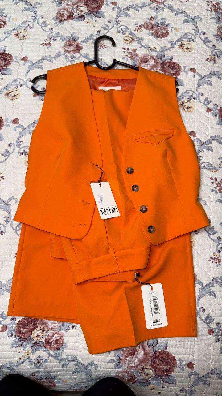 Летняя брючная двойка, оранжевого цвета. Турецкий бренд Robin. Лёгкая, стильная и удобная на лето. Артикул: 538233