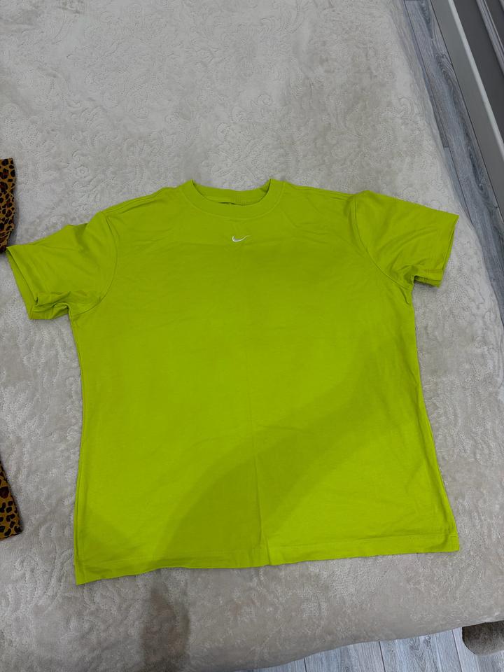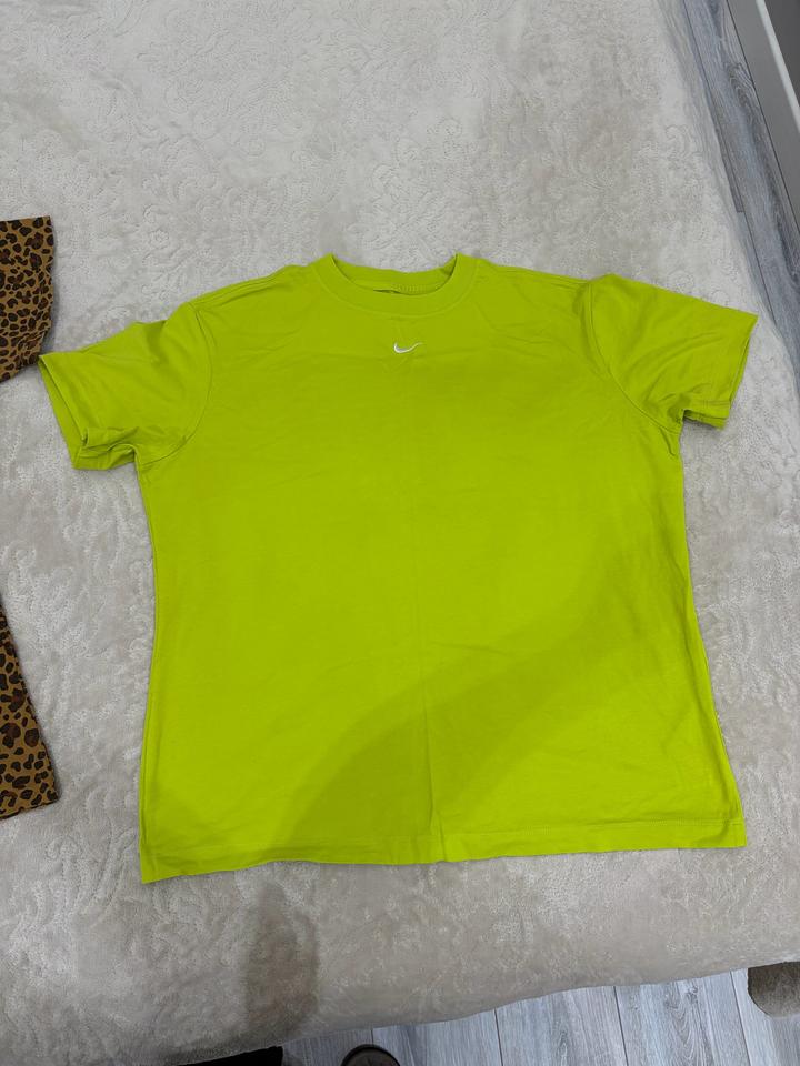 Nike The Nike Tee (оригинал) Размер: M (loose fit — свободная посадка) Цвет: неоновый лайм Легкая и удобная футболка, отлично дышит, идеально на каждый день или тренировки. Мягкая ткань, держит форму, не сковывает движения. Яркий акцент в образе. Состояние: нового Не носилась Бирка снята, лежит Артикул: 538254