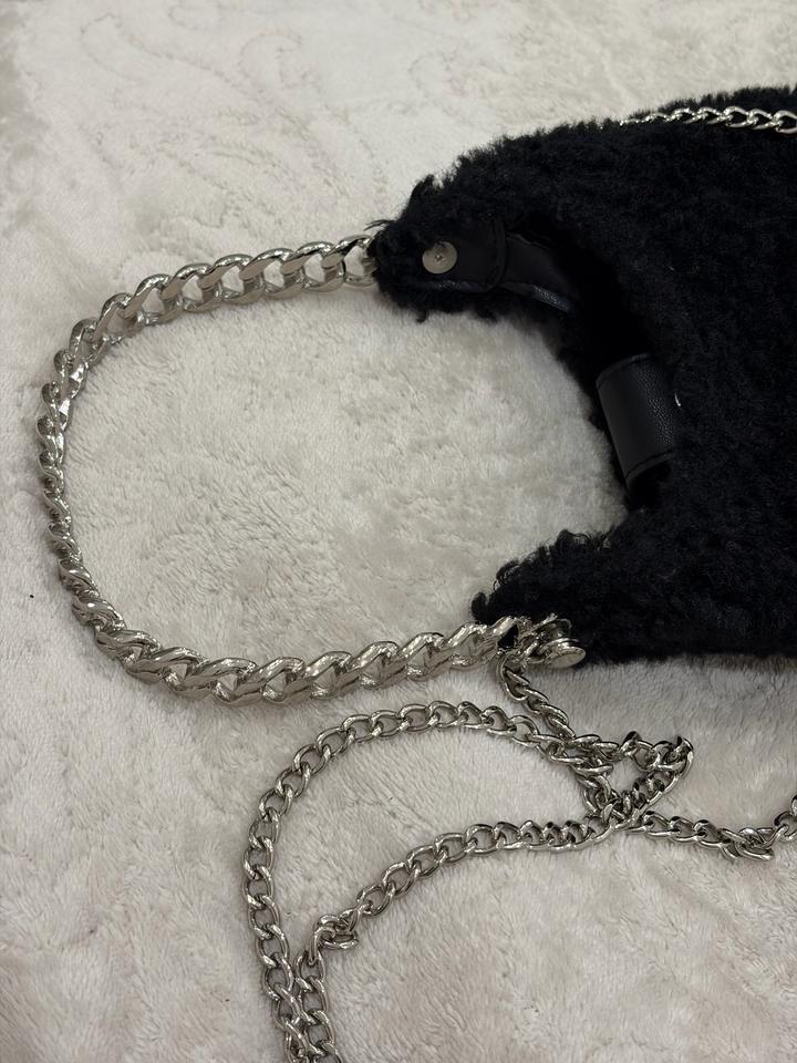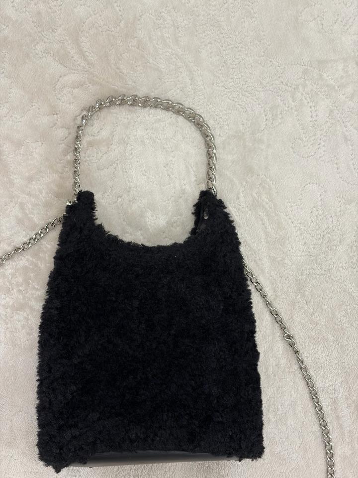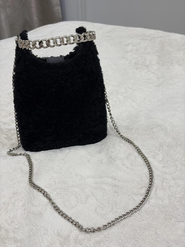 Сумка mini с цепью Цвет черный, фактура под мех Стильная, компактная, можно носить в руке или на плече Металлическая цепь, выглядит дорого Состояние новый без бирок Артикул: 538349