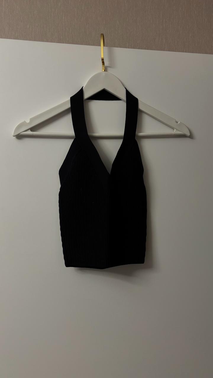 Черный топ с открытыми плечами и спинойXXS