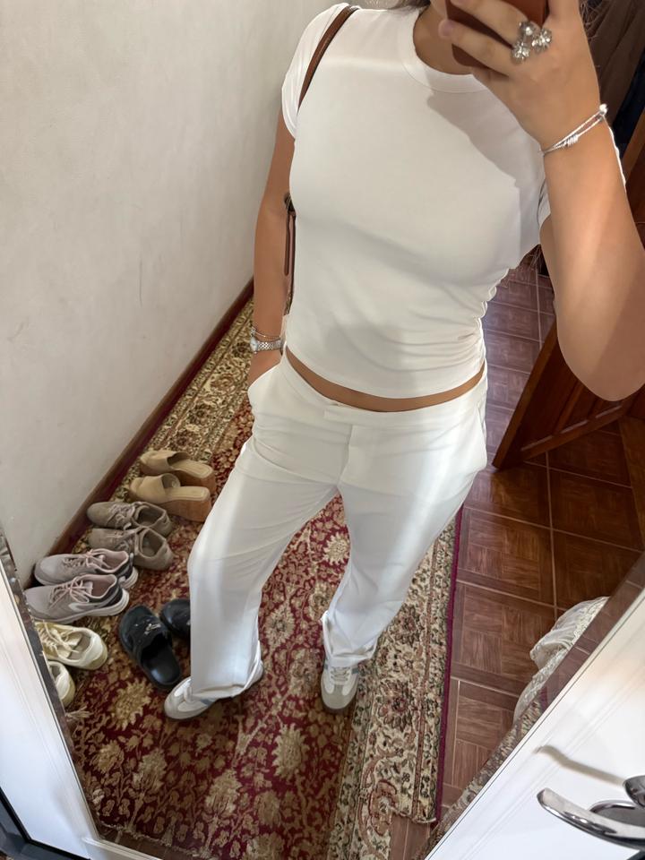 Белые классические брюки на низкой посадке Zara. По фигуре сидят нереально круто. Подойдет для высоких. Мой рост 175. Артикул: 538395