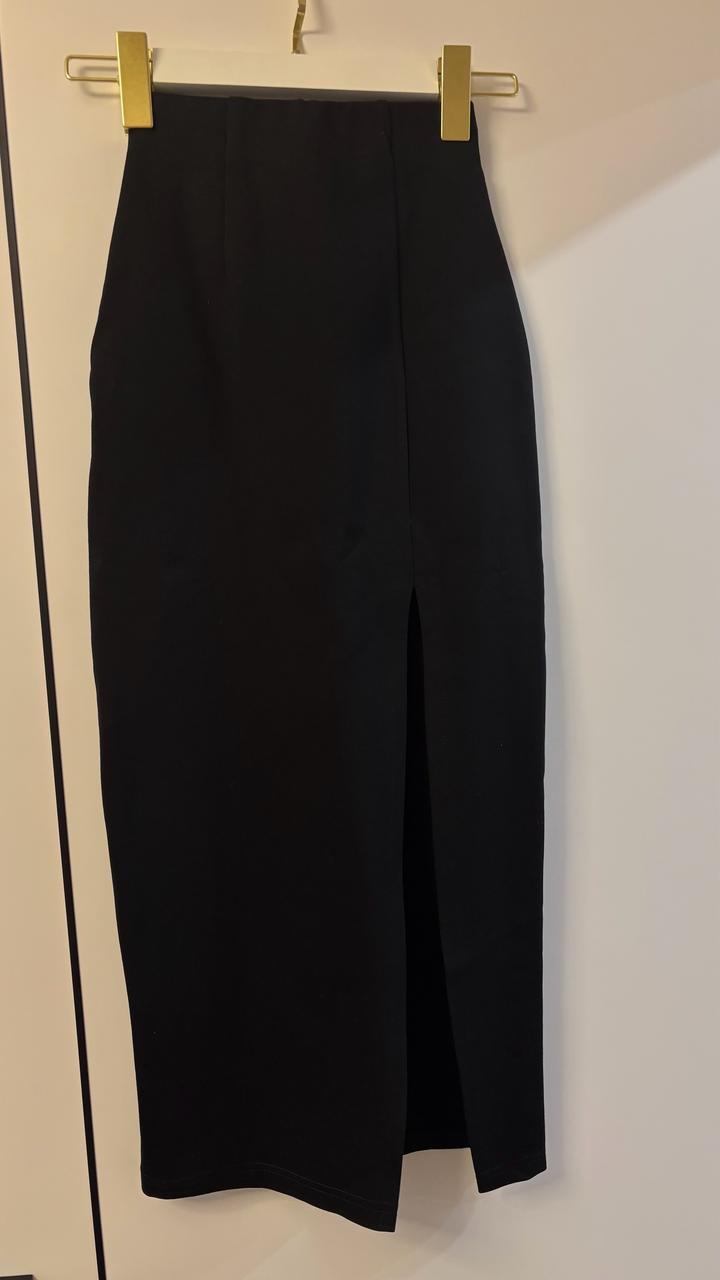Черная длинная юбка с разрезомXXS