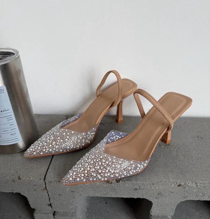 Туфли лодочки на каблуке со стразами с открытой пяткой, очень удобная колодка Высота каблука - 8 см Состояние хорошее, пару раз одевали Артикул: 538415