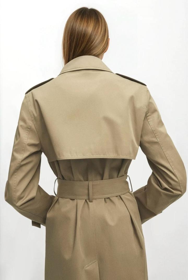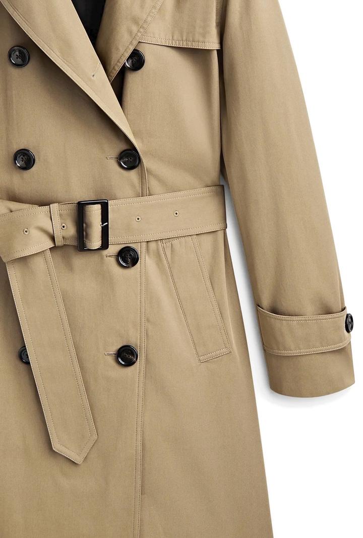 Тренч с поясом. Изготовлен из 100% хлопка. Плечи с язычками. Двубортная застежка на пуговицы спереди. Два боковых кармана. Ремень с пряжкой. Заднее вентиляционное отверстие. Низ с шлицей сзади. На подкладке. Артикул: 538422
