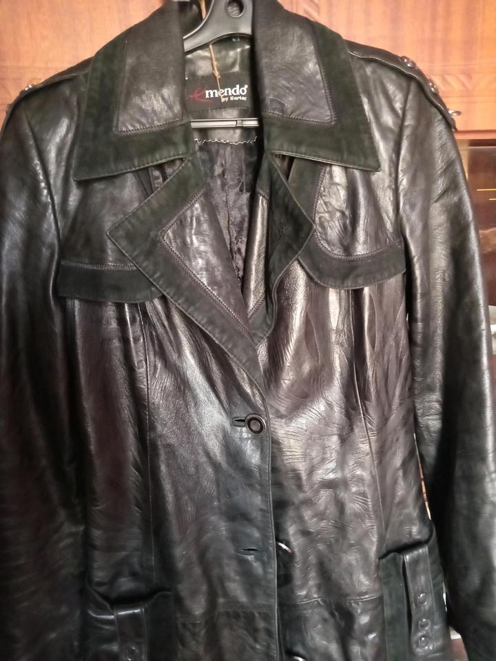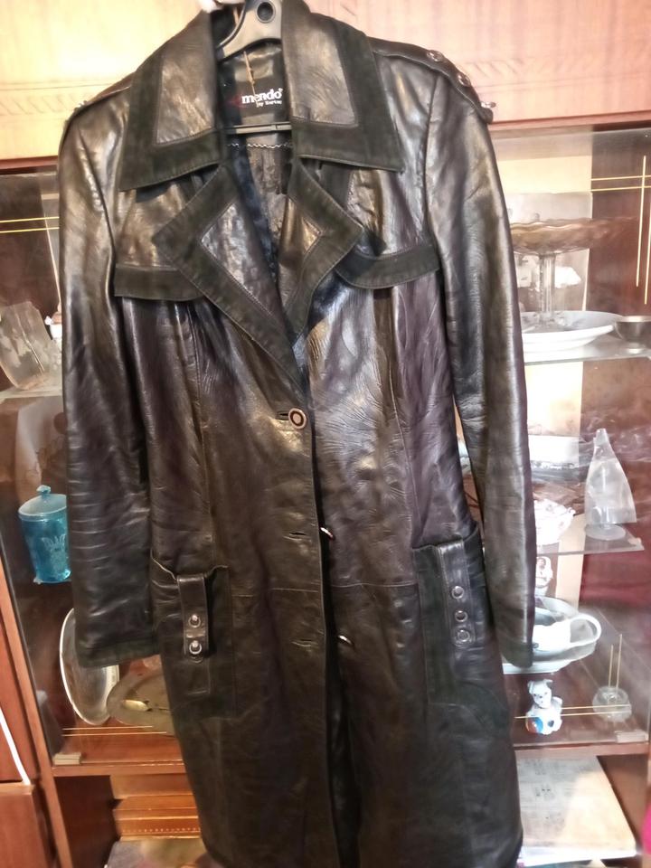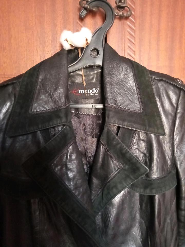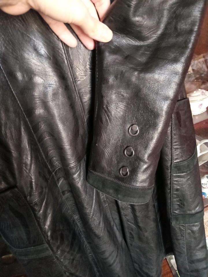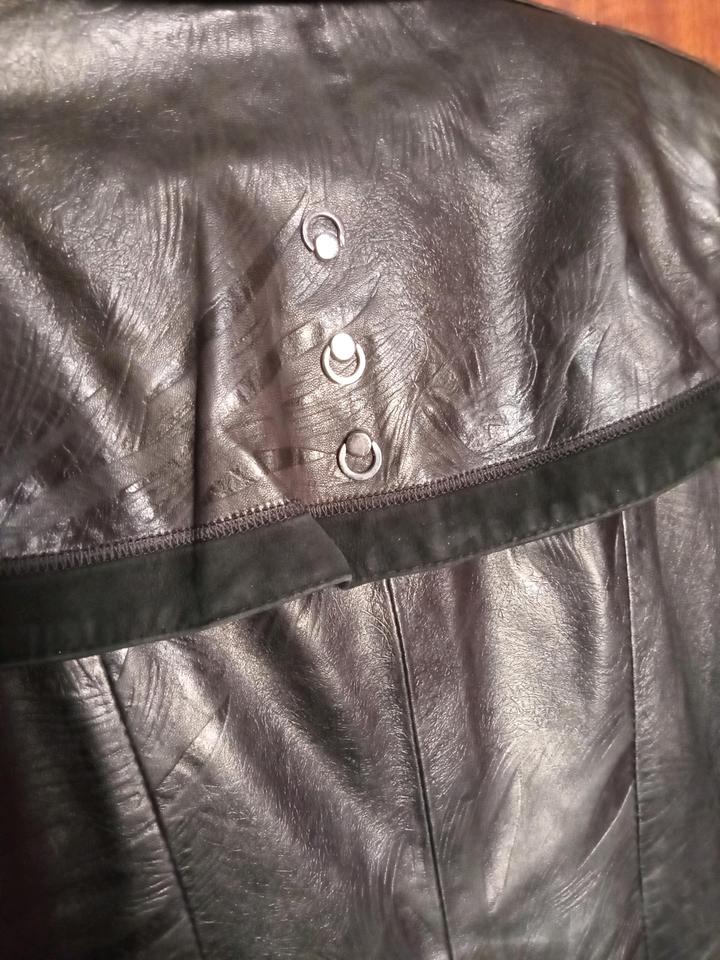 Черный плащ из кожи с замшевой отделкой. В хорошем состоянии, но надо погладить Грудь 90 см Талия 76 см Длина 100 см Длина рукавов 60 см Артикул: 538657