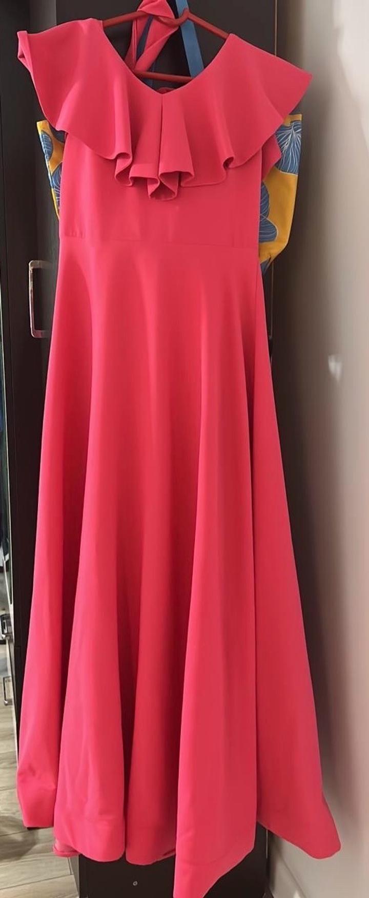 ярко розовое платье длинноеL