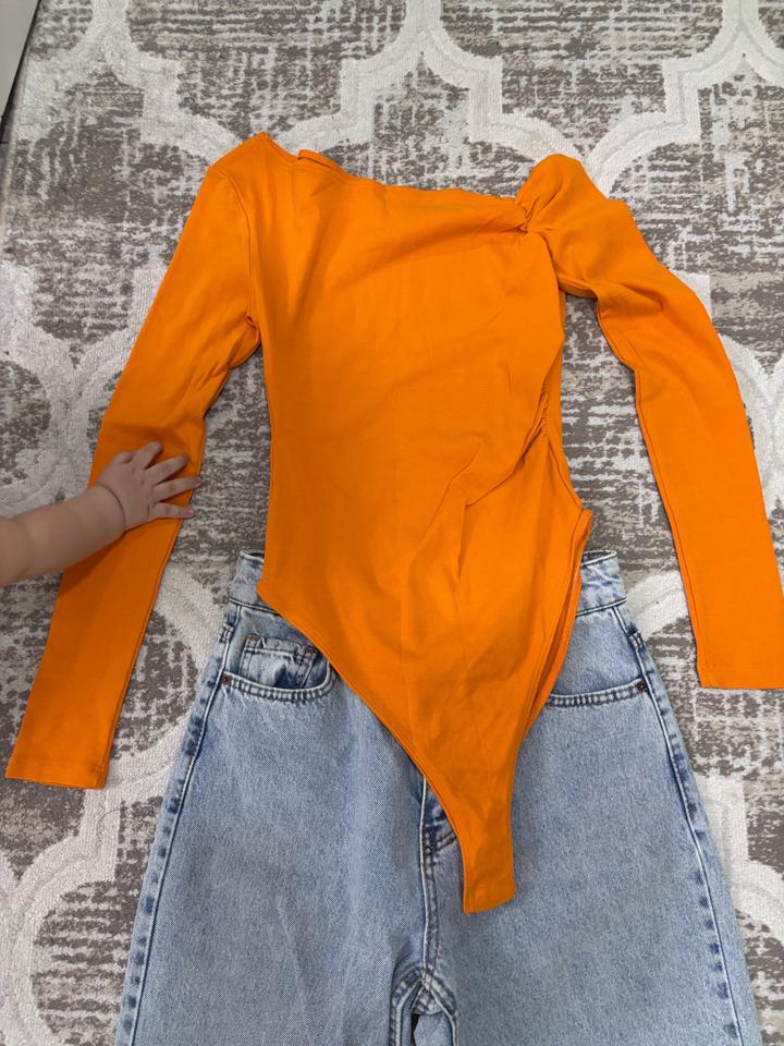 Боди Zara оранжевого цвета, одно плечо открытое Не ношен, без бирок Оригинал Артикул: 538814