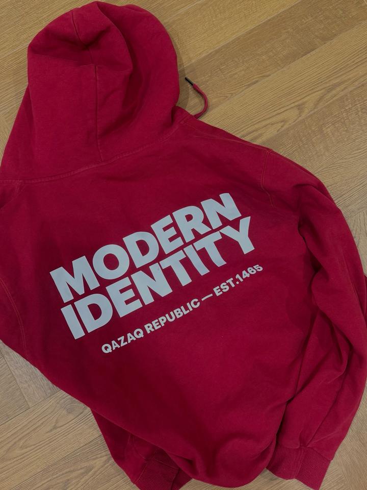 Зип-худи приятного красного цвета от Казах Репаблик, оверсайз кроя. Артикул: 538864