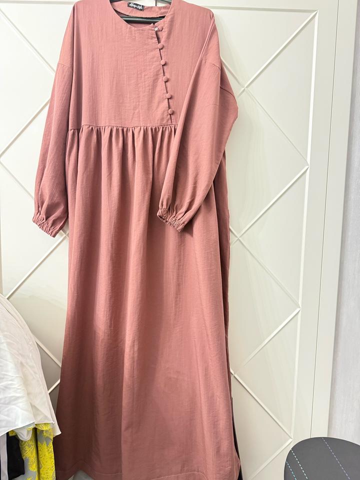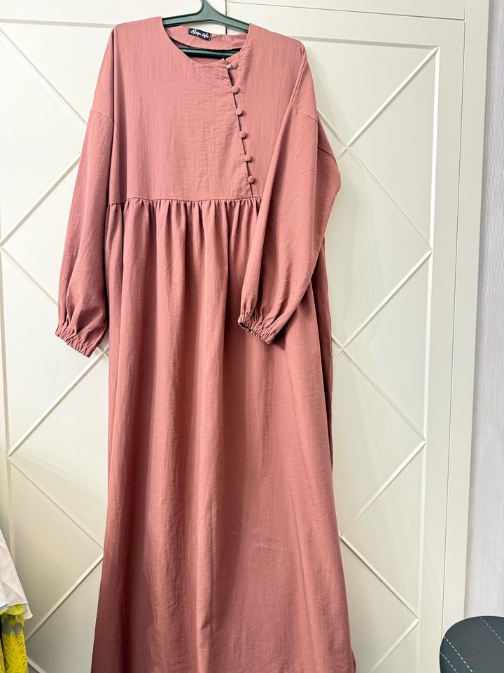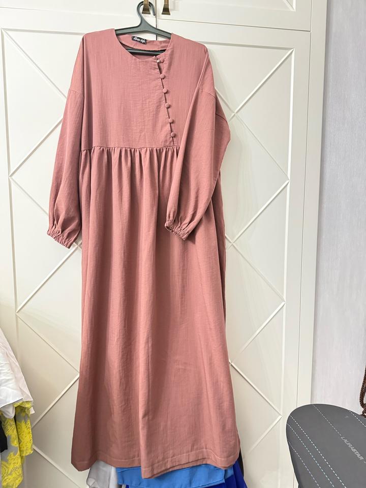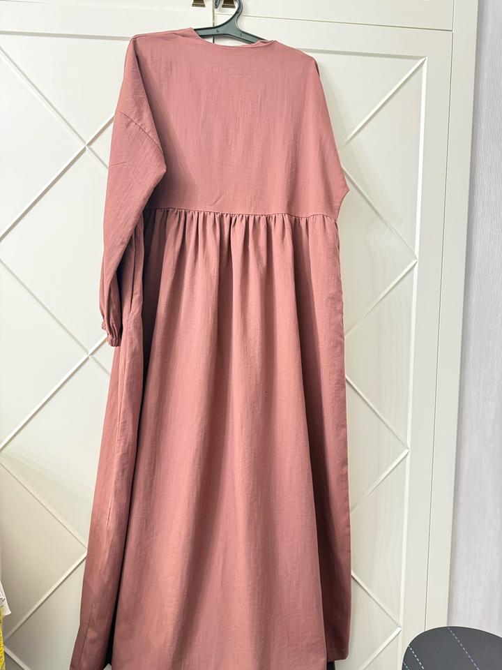 Базовое платье пыльно розового цвета, длина макси, рукава длинные на манжете, спереди рабочие пуговицы, сезон весна-осень, один раз надевалось, состояние новое Артикул: 538868