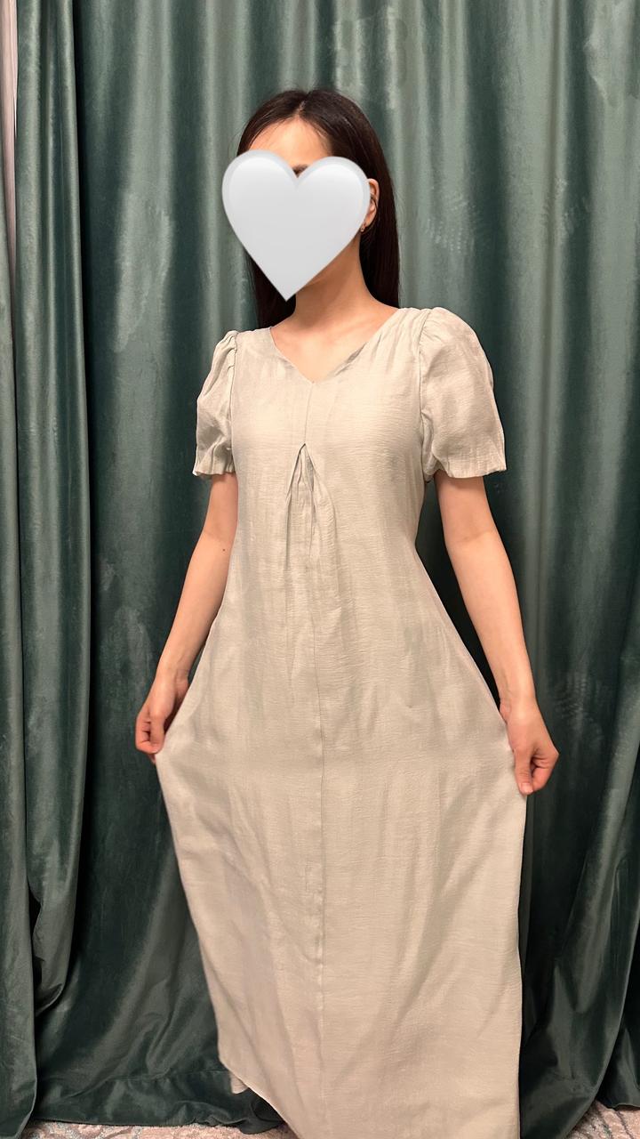 Элегантное платье в нежном пыльно-зелёном оттенке. Модель с аккуратным V-образным вырезом и мягкими сборками на груди. Ткань струящаяся, с деликатным шёлковистым блеском, приятная на ощупь и комфортная в носке. Платье свободно ниспадает, создавая лёгкий, плавный силуэт и ощущение лёгкости при движении. Идеально подойдёт как для повседневных образов, так и для более нарядных случая, так же подойдет беременяшкам Артикул: 538877