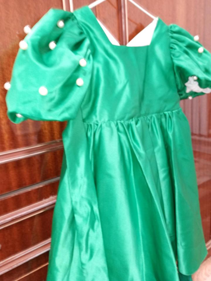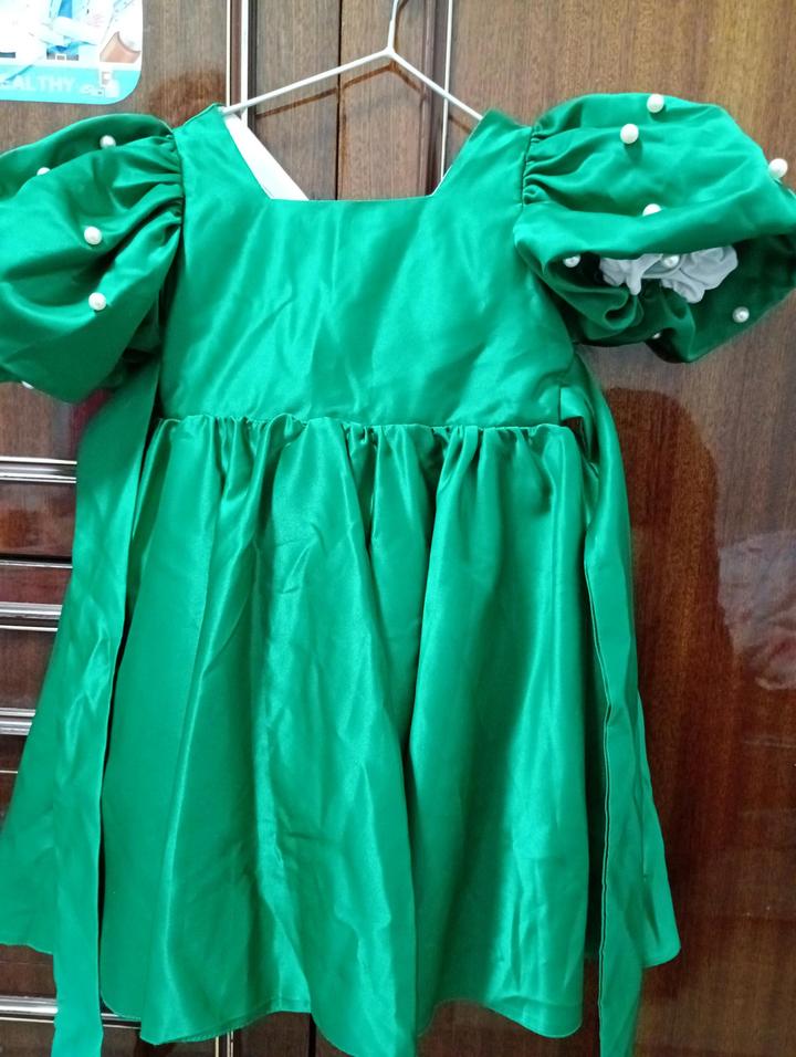 Зеленое платья, материал синтетика. Подходит для 3-4годиков. Носили всего 1 раз. Дефект нету Артикул: 538920