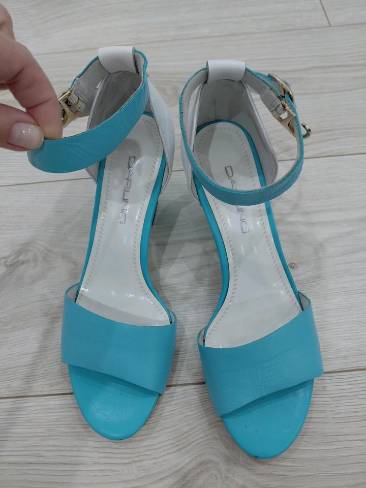 Босоножки бирюзово-белого цвета. Одевала 1 раз. Производство Турция, бренд Darling Артикул: 539063
