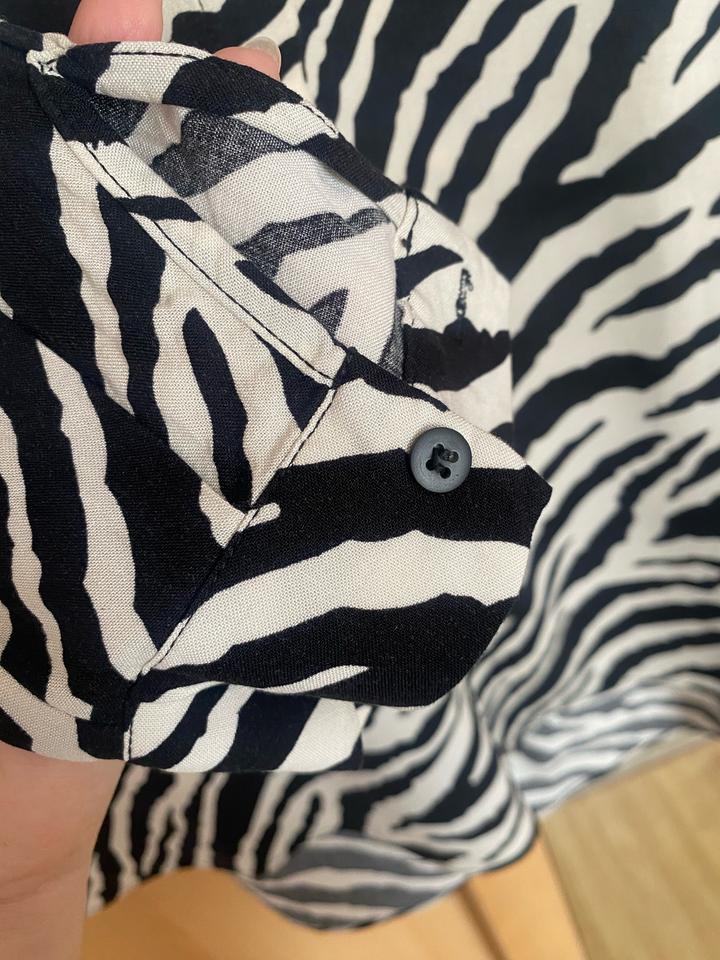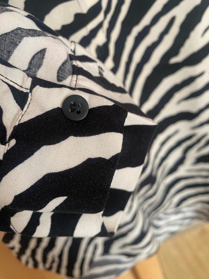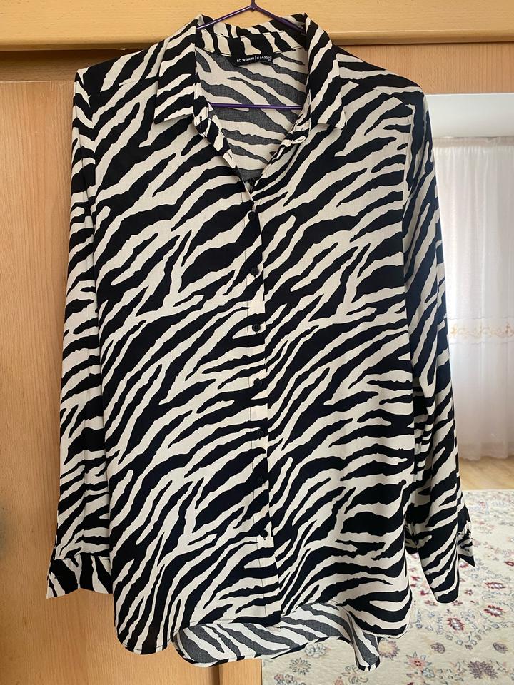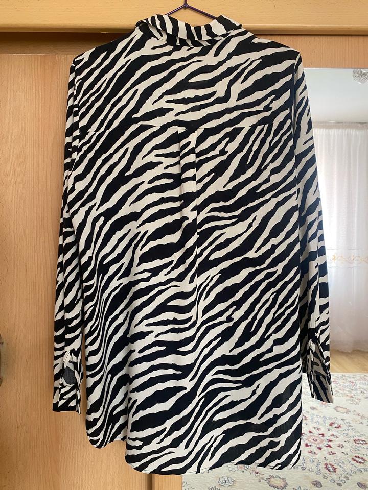 Блузка с анималистичным принтом (зебра). Подходит как для повседневной носки, так и для офиса. • Свободный крой • Легкая, приятная к телу ткань • Длинный рукав • Застежка на пуговицы Состояние: отличное, без дефектов. Отлично сочетается с джинсами, брюками или юбкой. Артикул: 539103