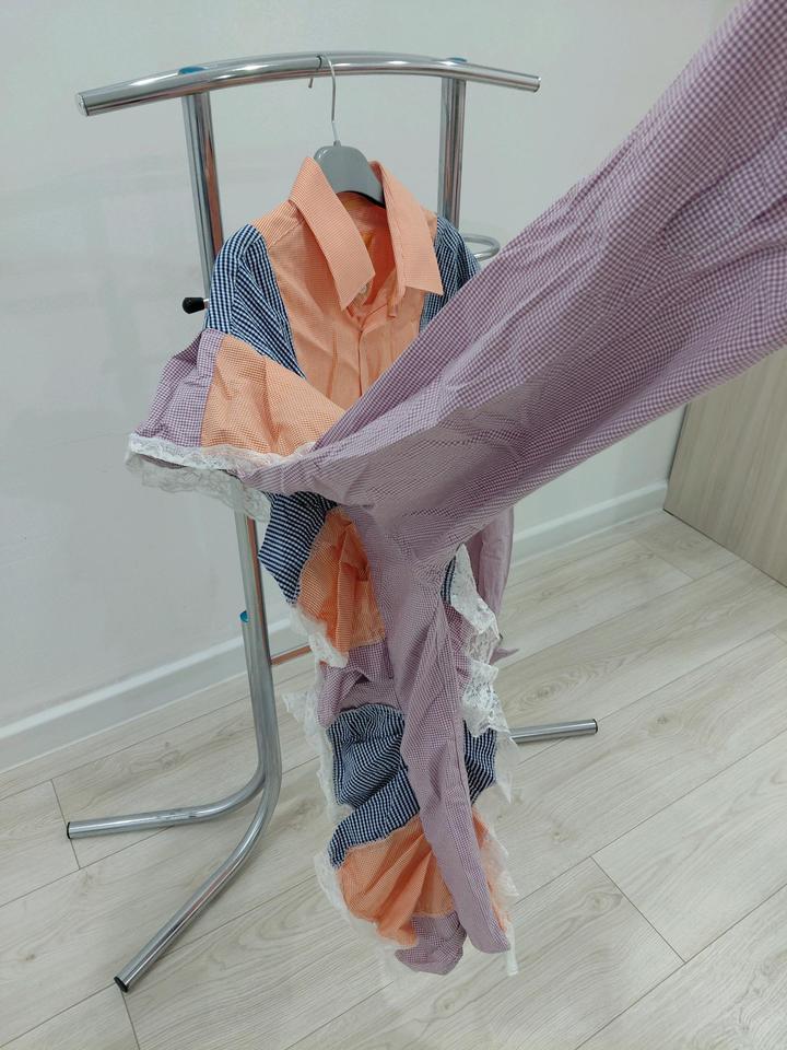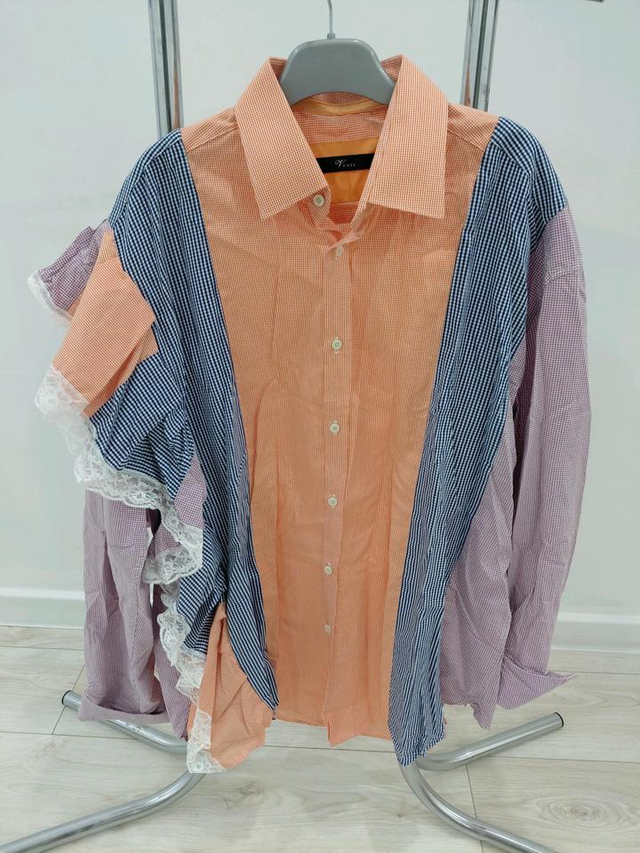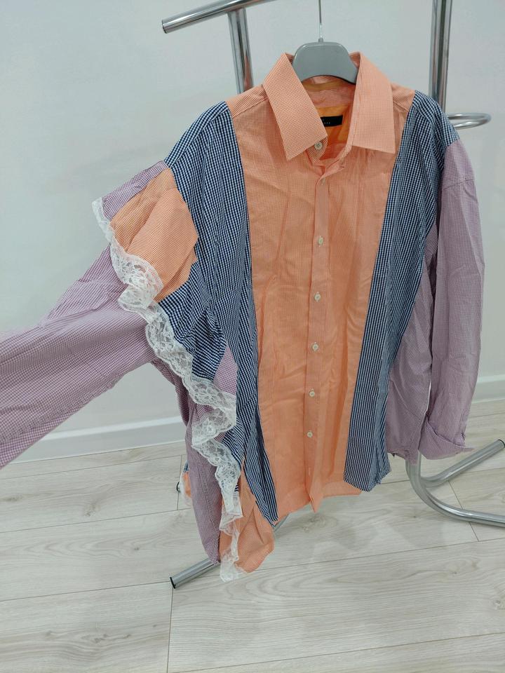 Рубашка апсайклинг. Качество ткани отличная, натуральный хлопок. Брала для тематичесеой вечеринки, одевала 1 раз. Рубашка подойдет для девушек, любящих необычные образы. Подойдет на размер M, L, на S если кто любит очень свободный крой. С джинсами классно смотрится. На фото не глаженная, после разглаживания будет смотреться намного лучше. Дефектов нет. Почти новая Артикул: 539147