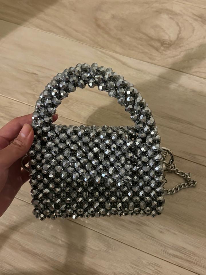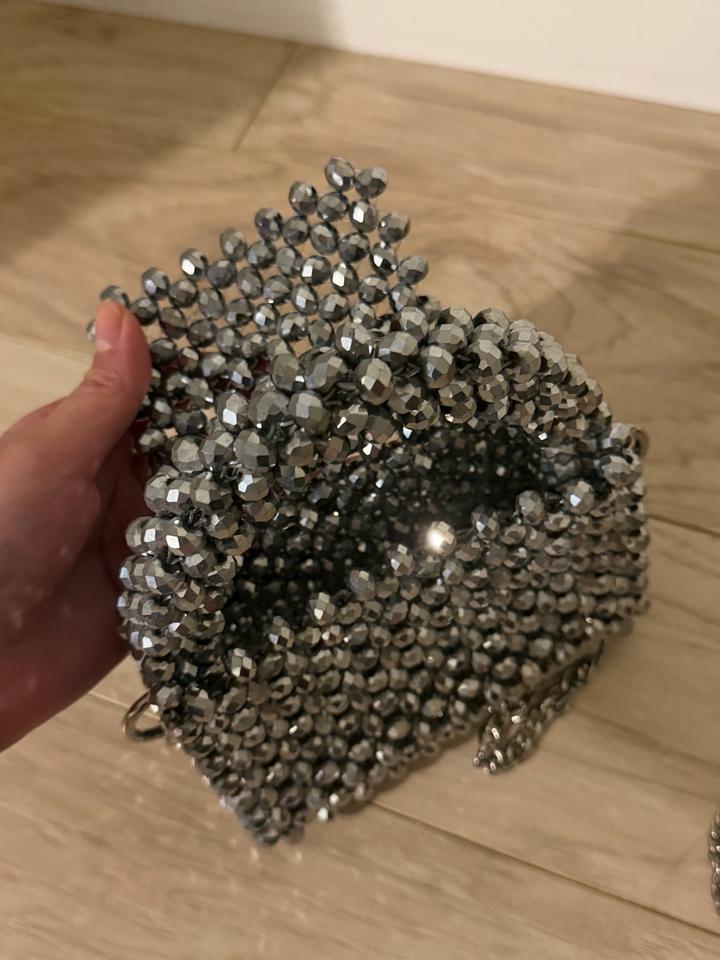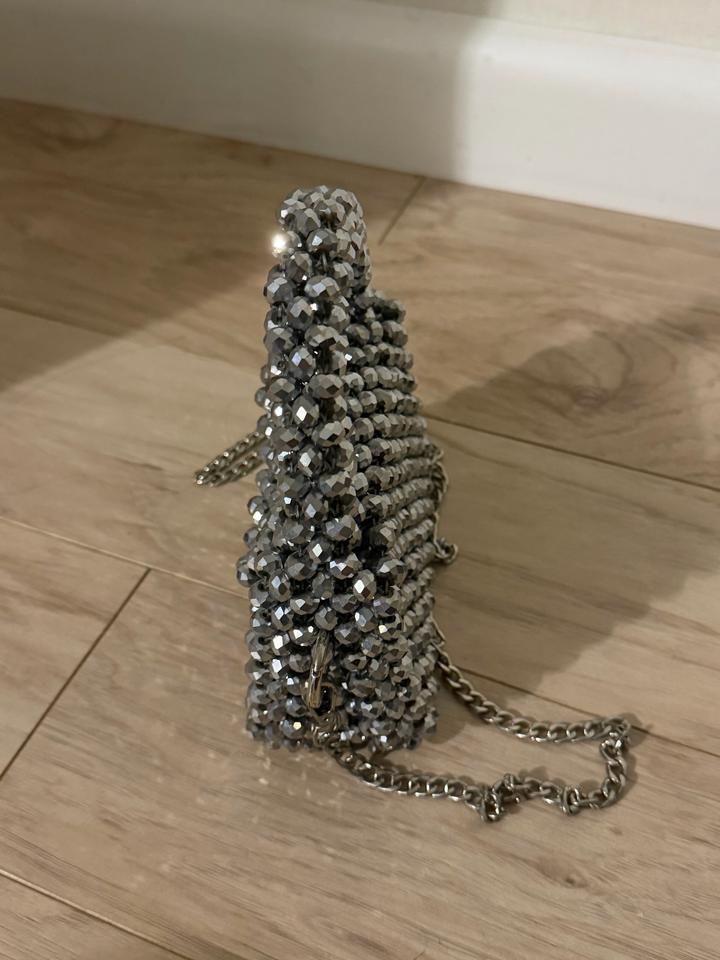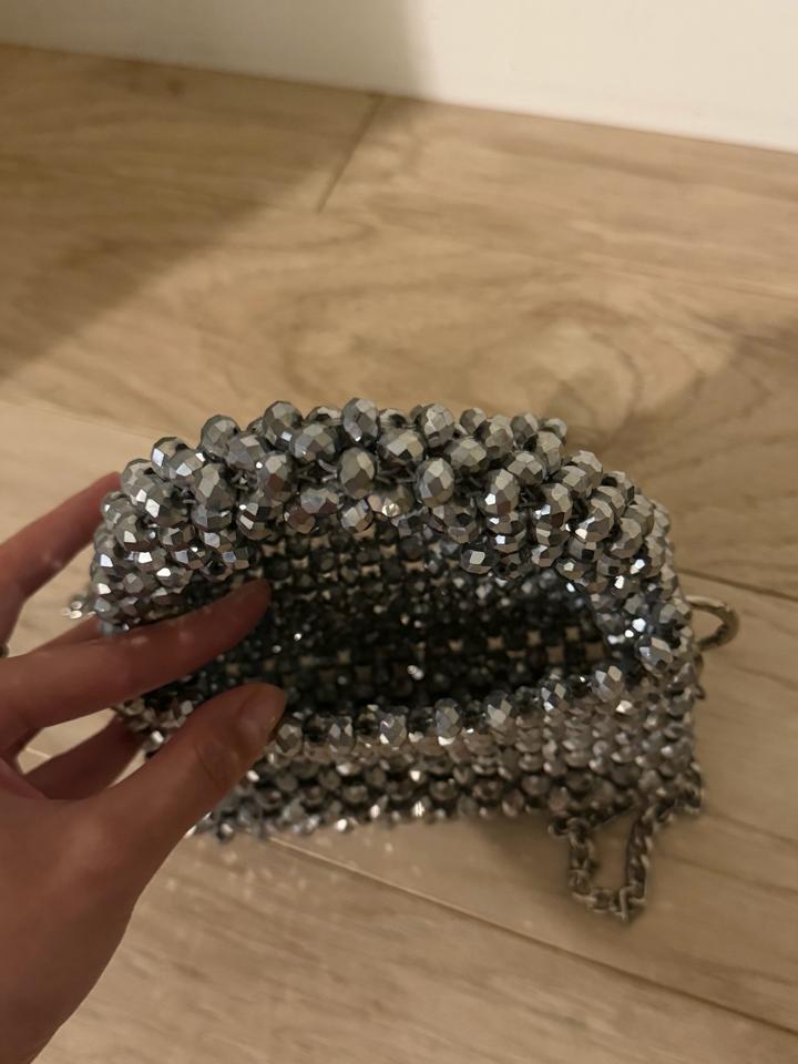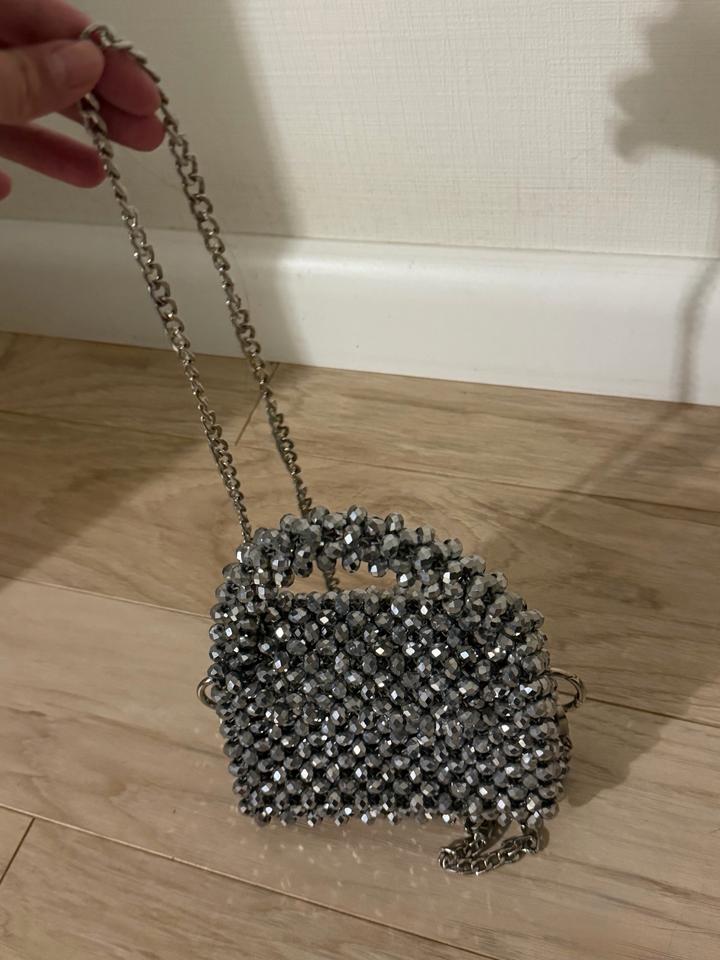 Эффектная мини-сумка ручной работы с кристаллами, идеальный вариант для вечерних выходов. Увесистая, красиво держит форму и сразу привлекает внимание. Можно носить в руке или на цепочке. Отличное состояние. Артикул: 539156
