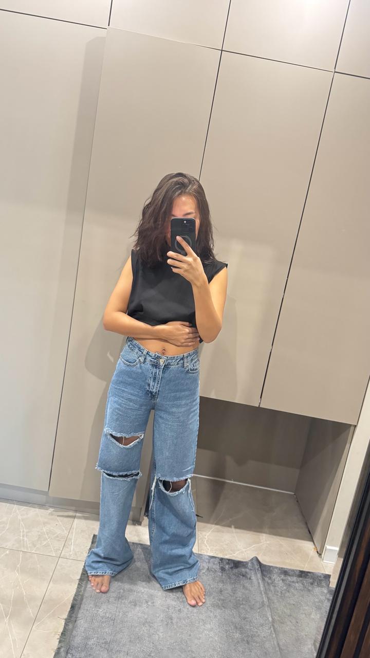 Стильные джинсы. Мой рост 160 , не укорочивала. Носила только 1 раз, на 2-3 часа. Практисеский новые. Материал не плотный, натуральная джинса. Размер XS-S. Артикул: 539166