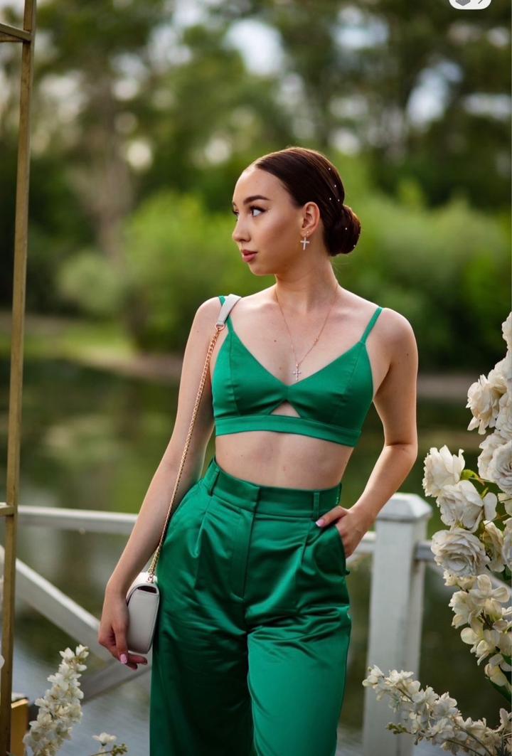 Новый атласный костюм тройка, брюки, топ и пиджак. 44 размер, подойдет на 46 тоже. Надевали один раз. Бренд Malina Bonita Артикул: 539239
