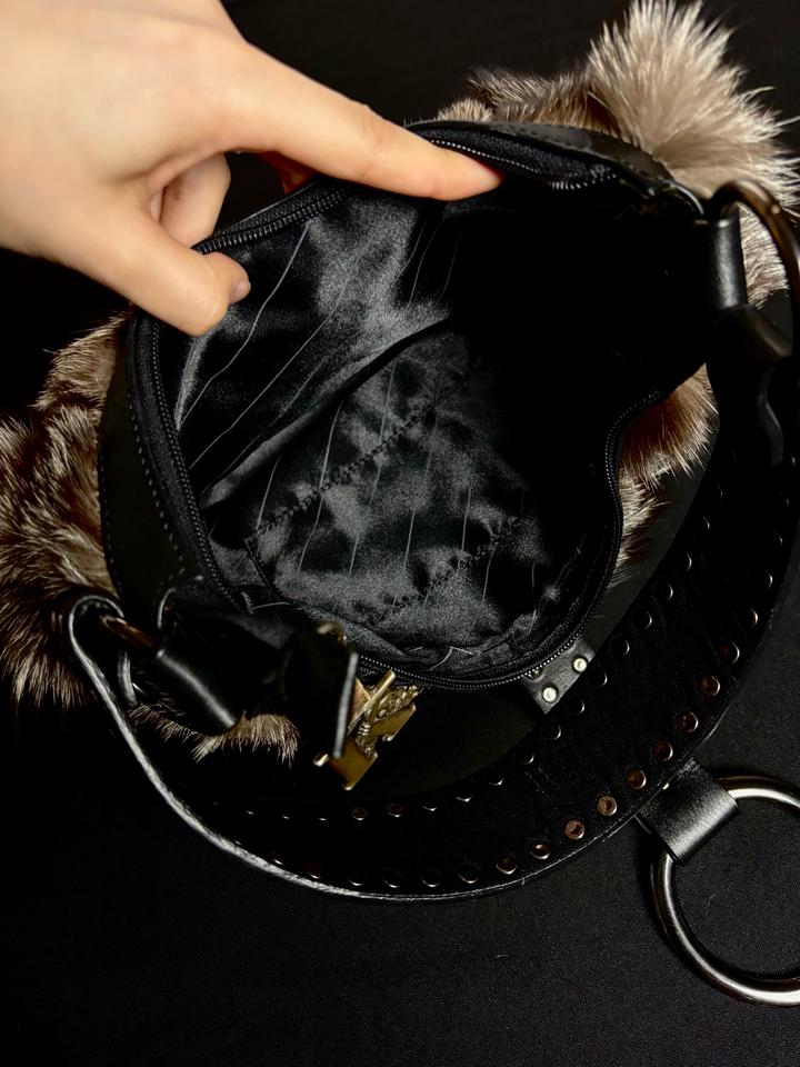 Сумочка с мехом и заклепками-
