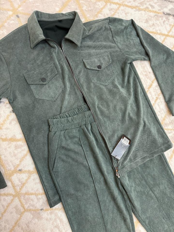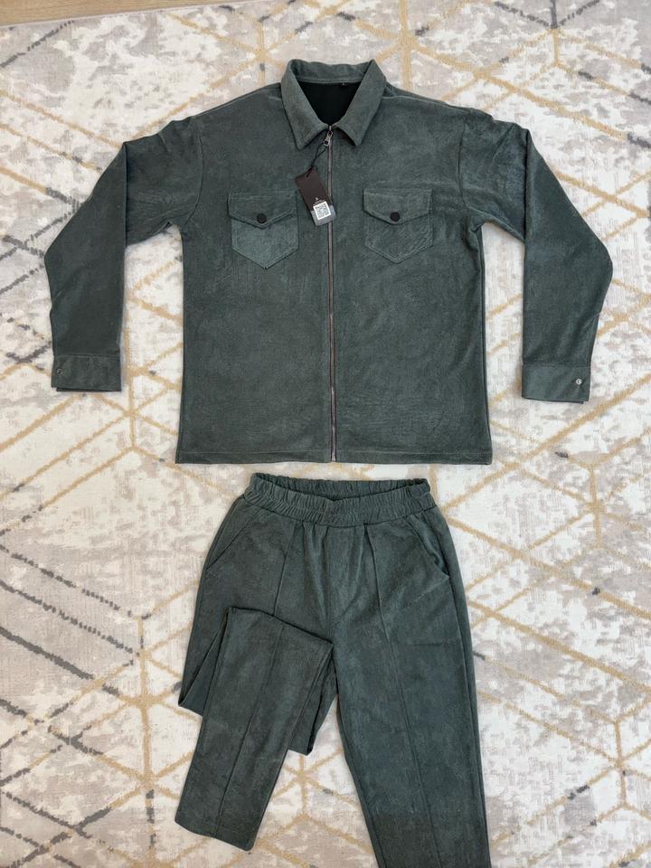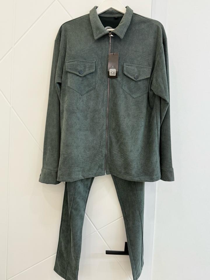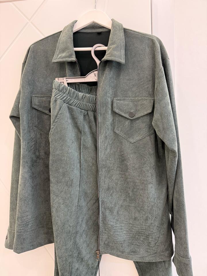 Мужской костюм Л, новый, подойдет на М. В цвете хаки. Вверх прямого кроя. Штаны зауженные. Все карманы рабочие Артикул: 539342