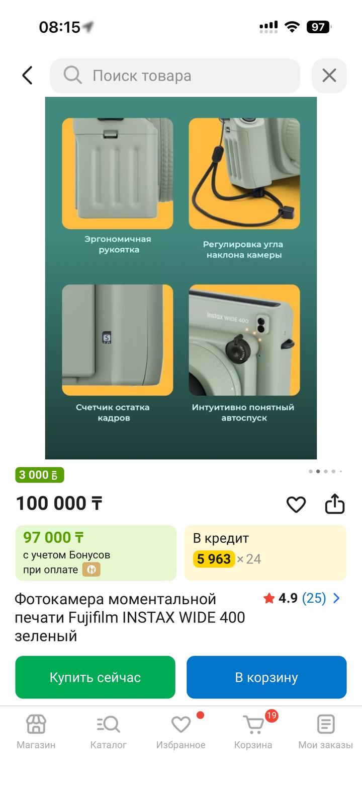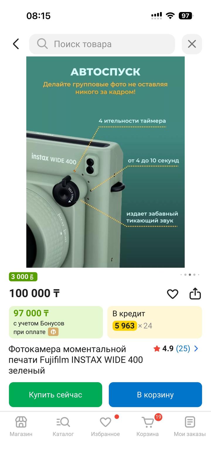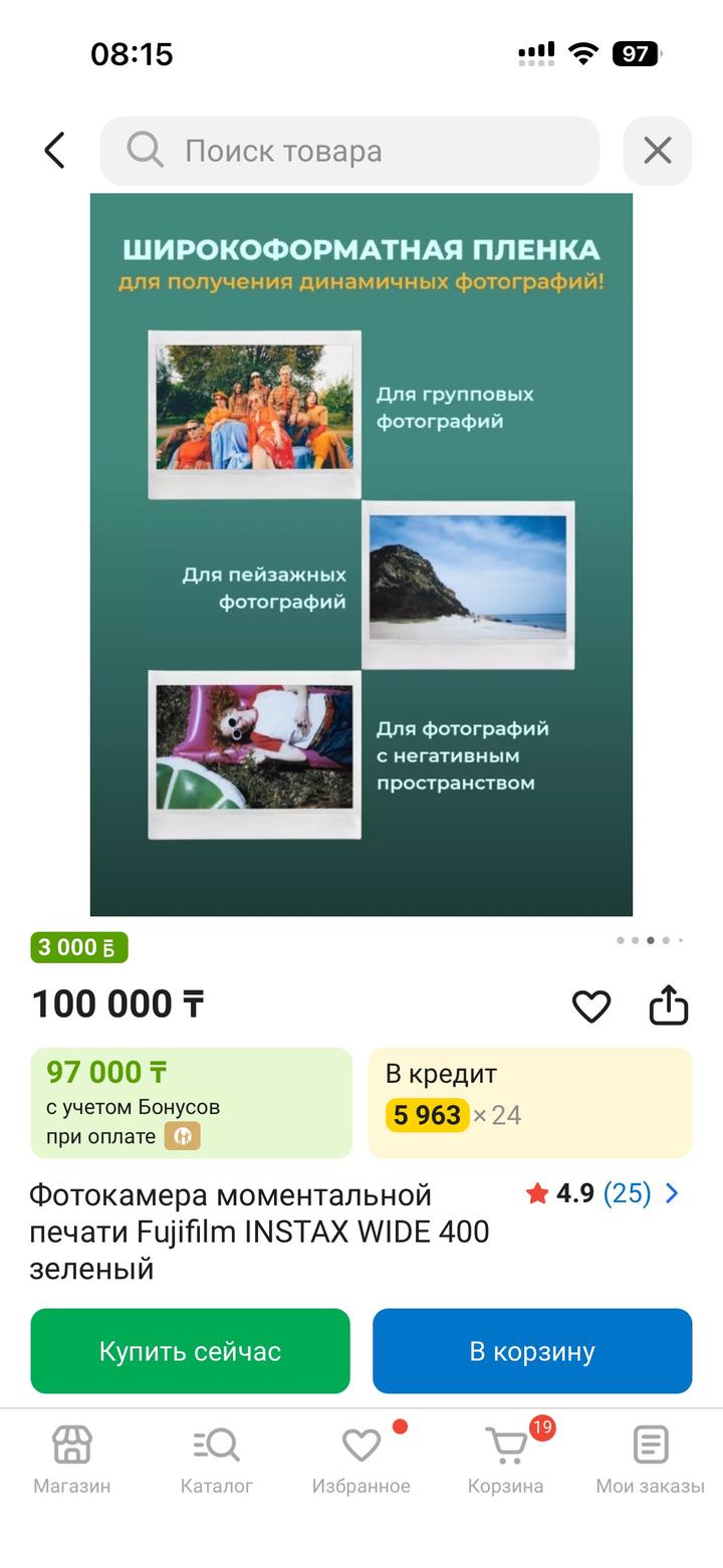 Fujifilm Instax Wide 400 💚 Подарили, но так и не пользуюсь — лежит без дела, а ведь кто-то о таком мечтает ✨ Делает атмосферные моментальные фото, как тот самый «полароид из детства» 📸 Идеален для воспоминаний, вечеринок и душевных моментов Пусть радует того, кто действительно будет им пользоваться 💚 Артикул: 539358
