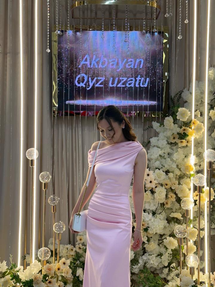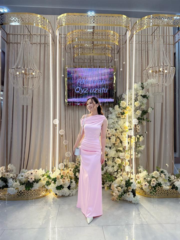 Розовое платье из атласа, в отличном состоянии, сшита на заказ, размер 40-42 Артикул: 539362